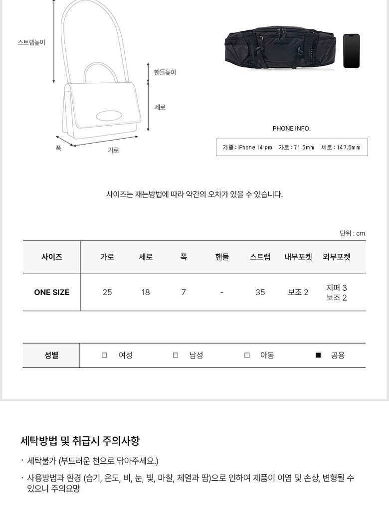 1. 종류 | 남녀공용 벨트백 |