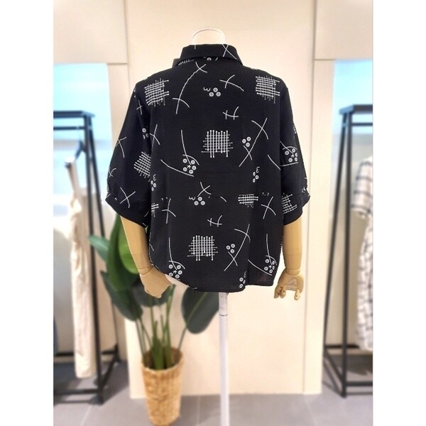 KNBLP504BK_메타 카라 5부 블라우스 블랙