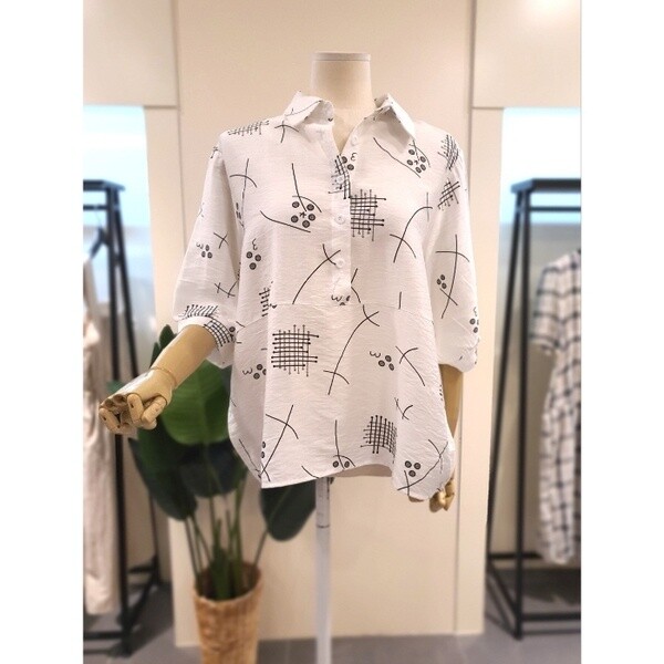 한여름까지 착용 가능한 시원한 원단의 블라우스입니다. 티셔츠형 디자인에 긴 5부소매 반팔로 안정감이 있습니다.
