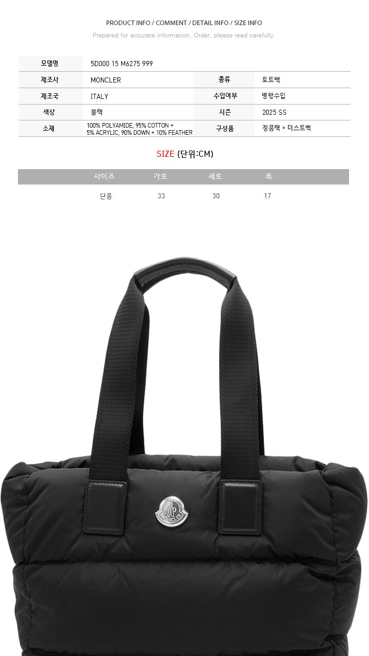 몽클레어 25SS CARADOC 로고 패치 패딩 토트백 블랙 5D000 15 M6275 999
