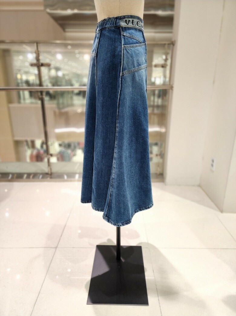 [발렌시아]밴딩 로고 플레어 데님 롱스커트 24AMS16