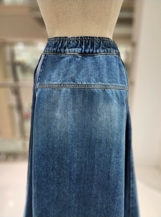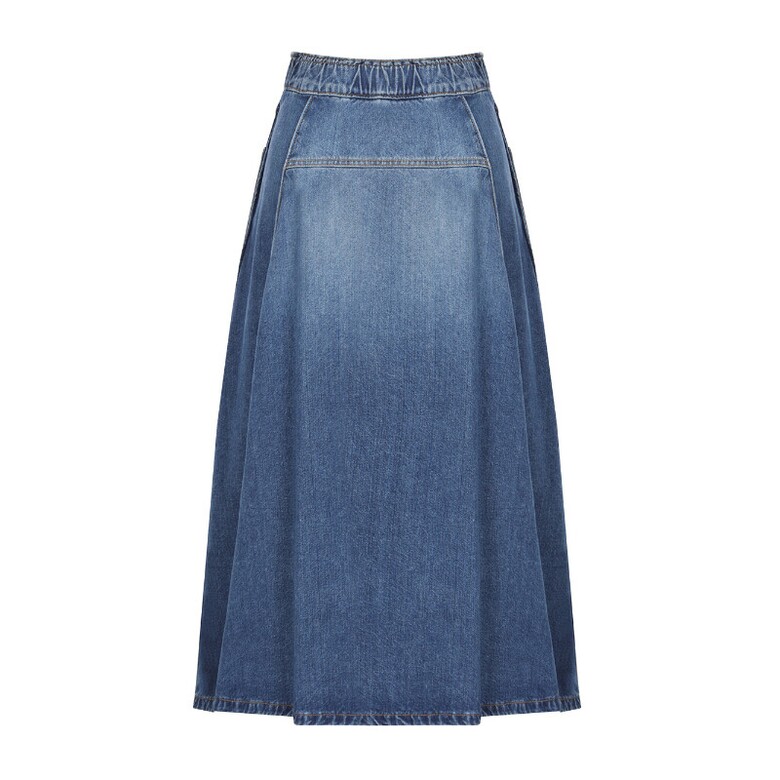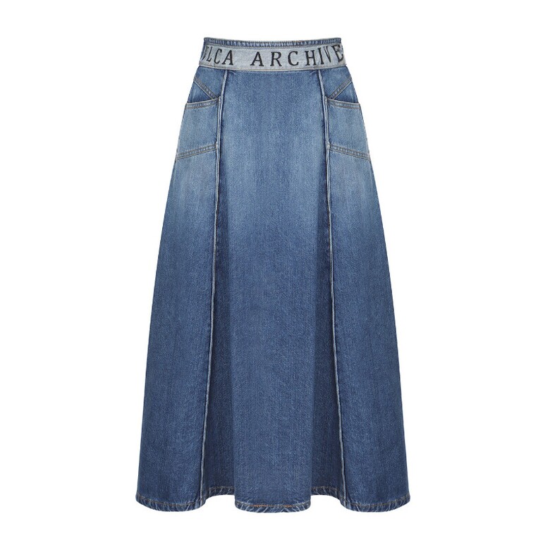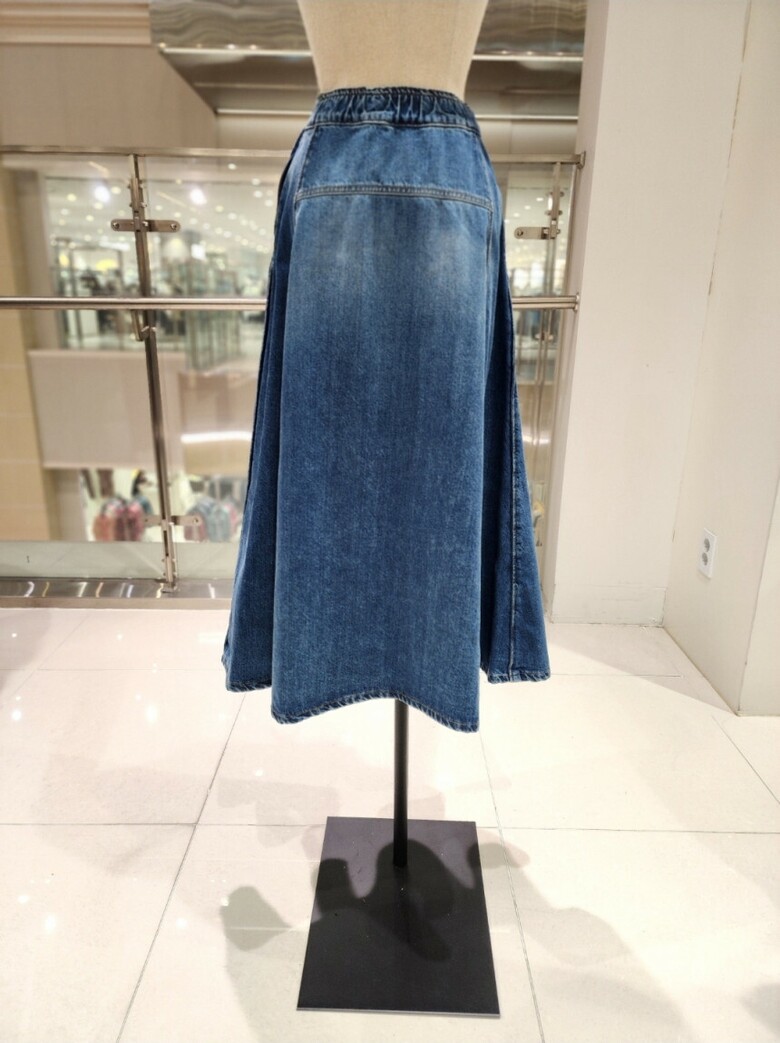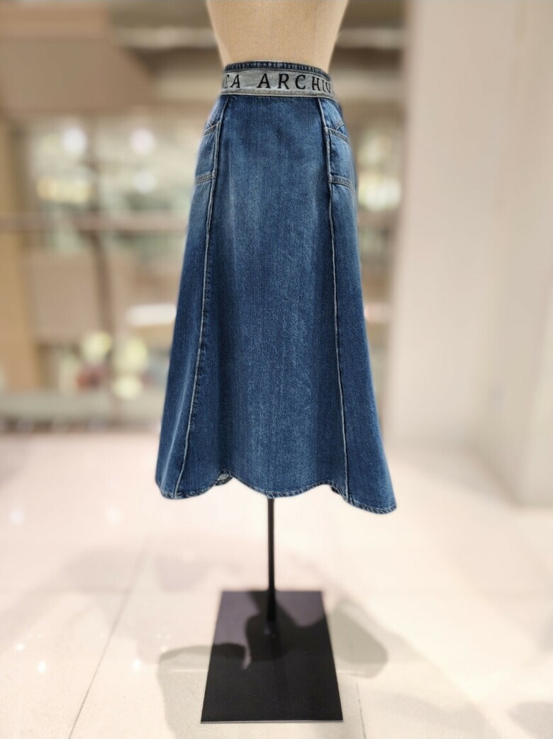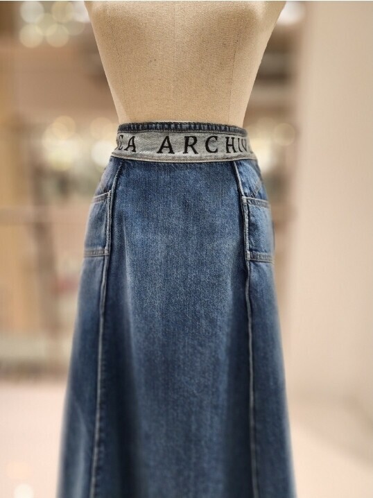 밴딩 로고 플레어 데님 롱스커트 24AMS16