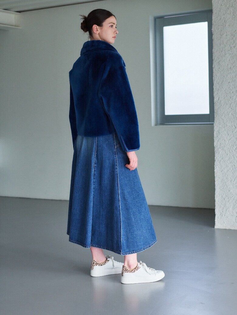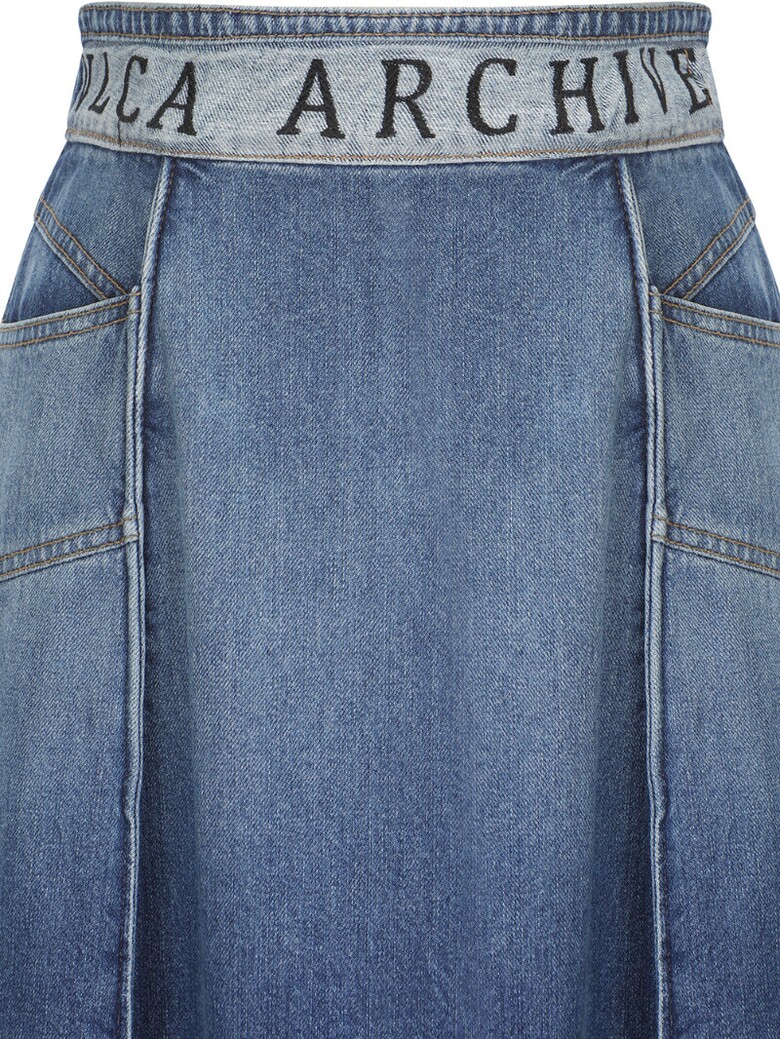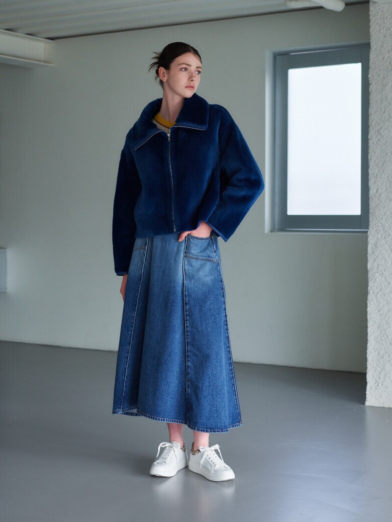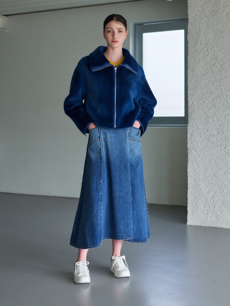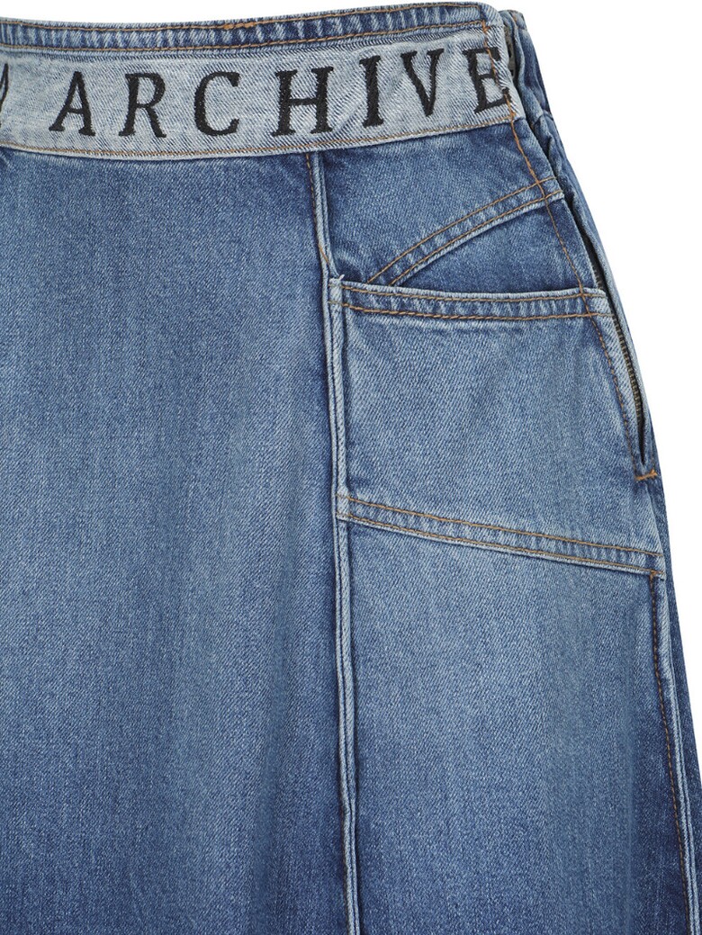 밴딩 로고 플레어 데님 롱스커트 24AMS16