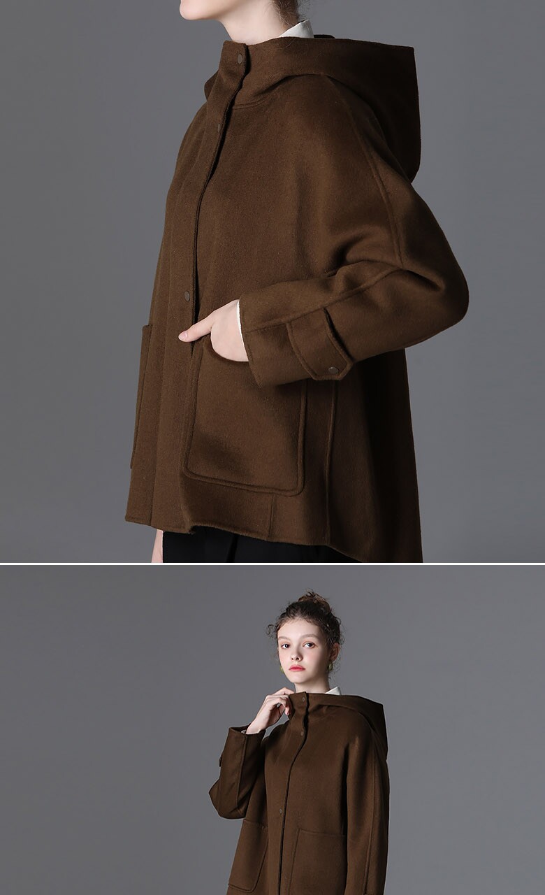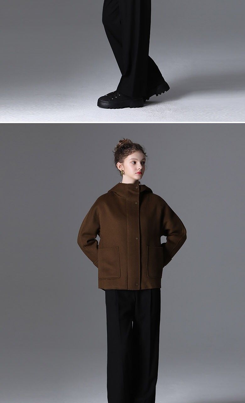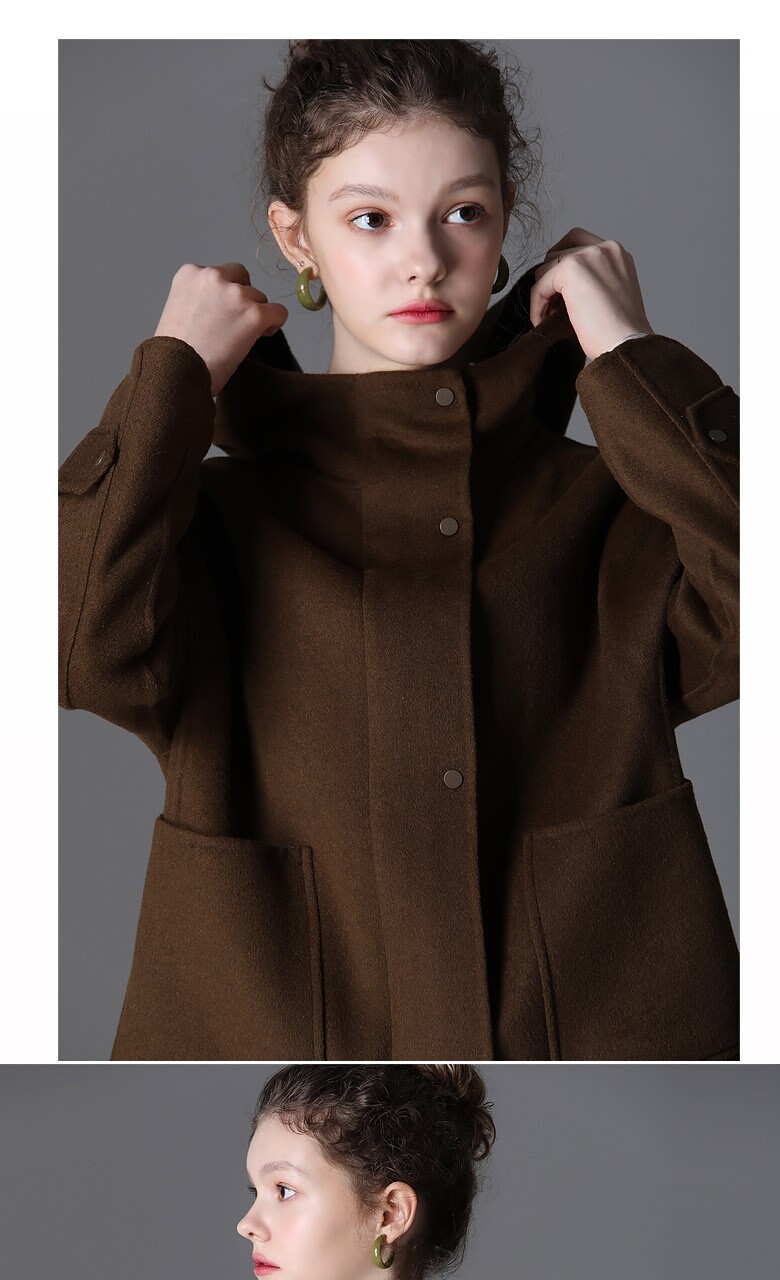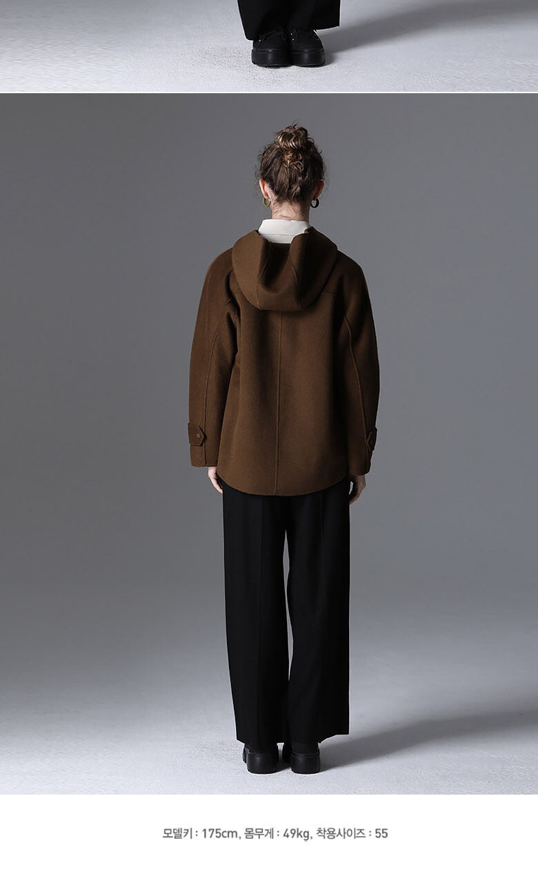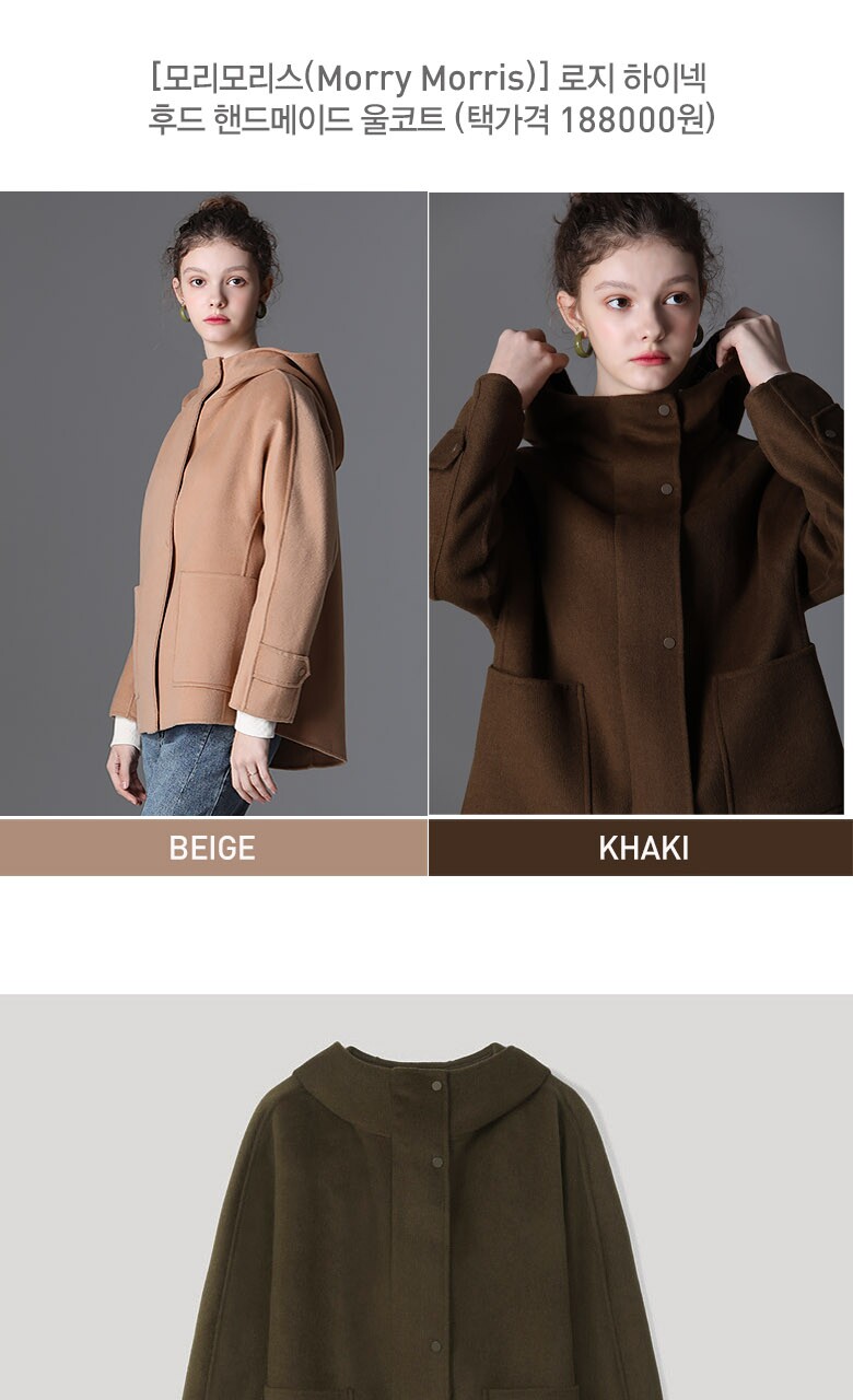 [모리모리스(Morry Morris)] 로지 하이넥 후드 핸드메이드 울코트 (택가격: 188000원)