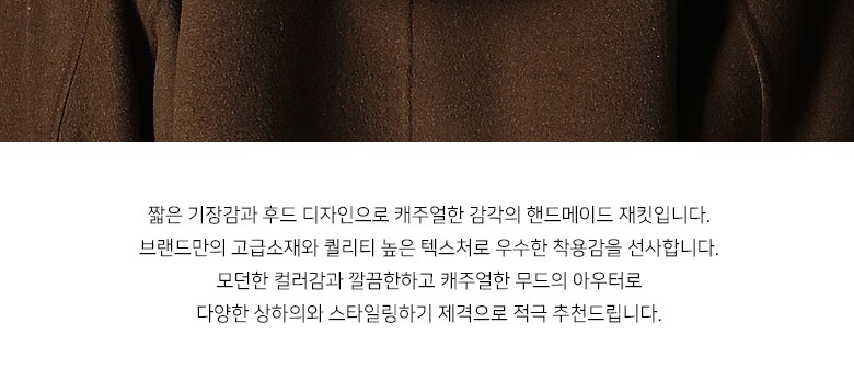 1. 제품 소재 (섬유의 조성 또는 혼용률을 백분율로 표시, 기능성인 경우 성적서 또는 허가서) | [겉감] 모 51%, 폴리에스터 44%, 아크릴 5% [안감] 폴리에스터 100% |
