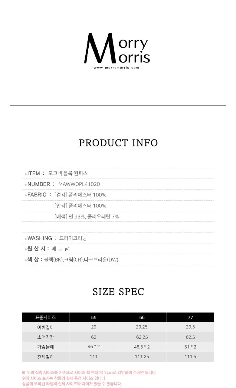 2. 색상 블랙(BK),크림(CR),다크브라운(DW)
