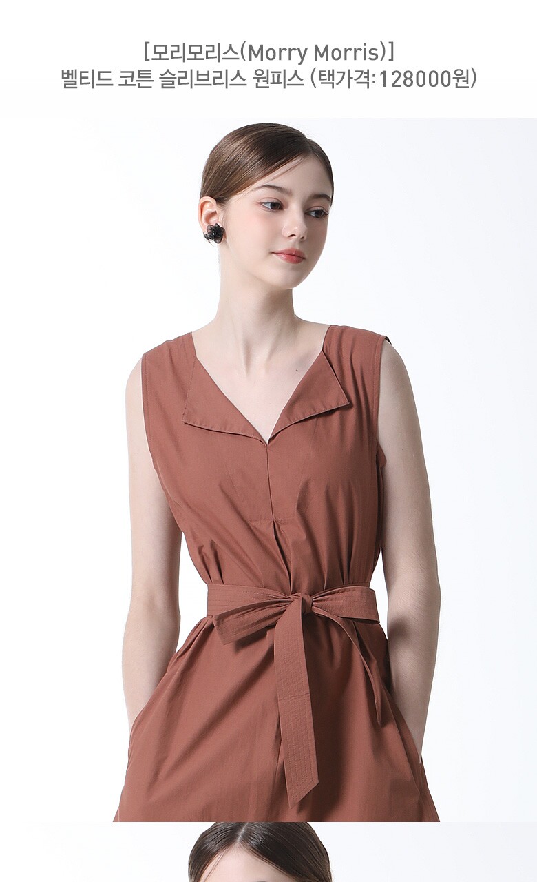 [모리모리스(Morry Morris)] 벨티드 코튼 슬리브리스 원피스 (택가격: 128000원)