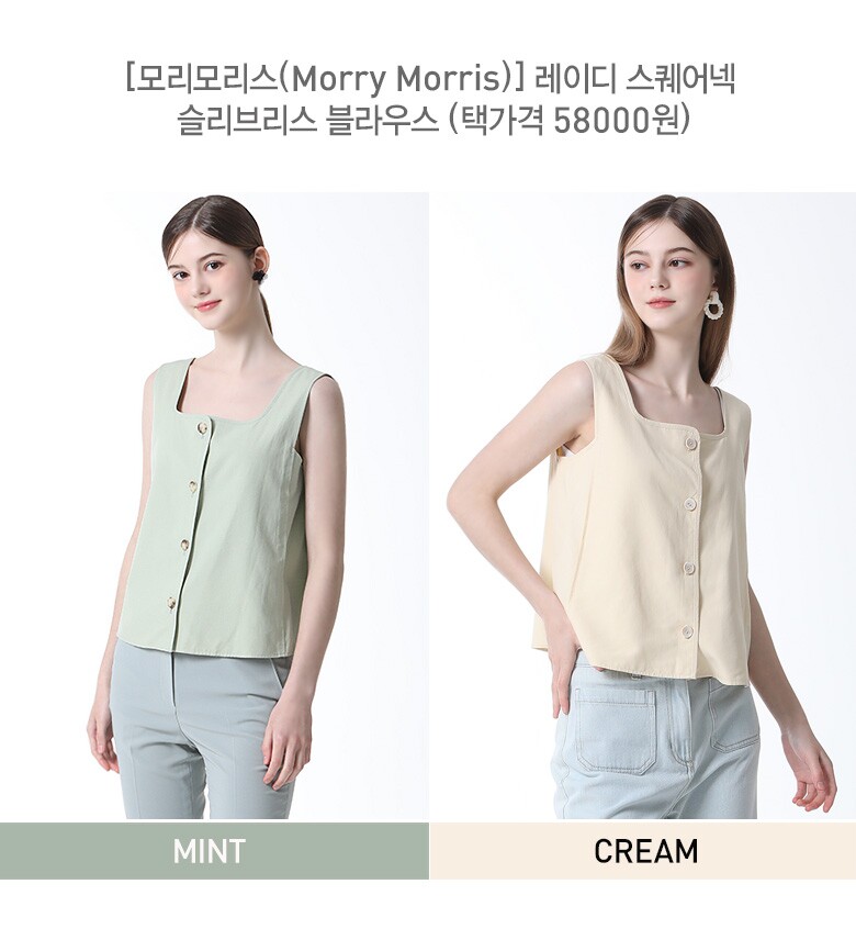 [모리모리스(Morry Morris)] 레이디 스퀘어넥 슬리브리스 블라우스 (택가격 58000원)