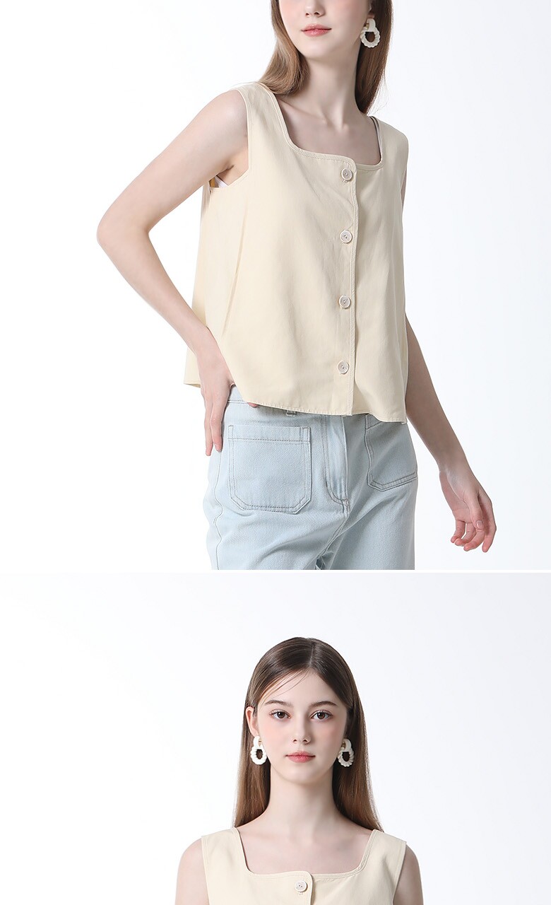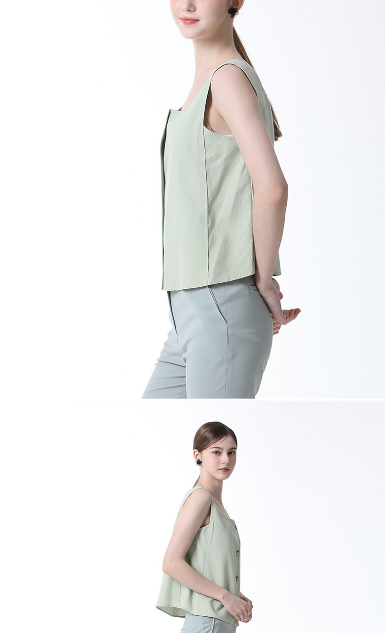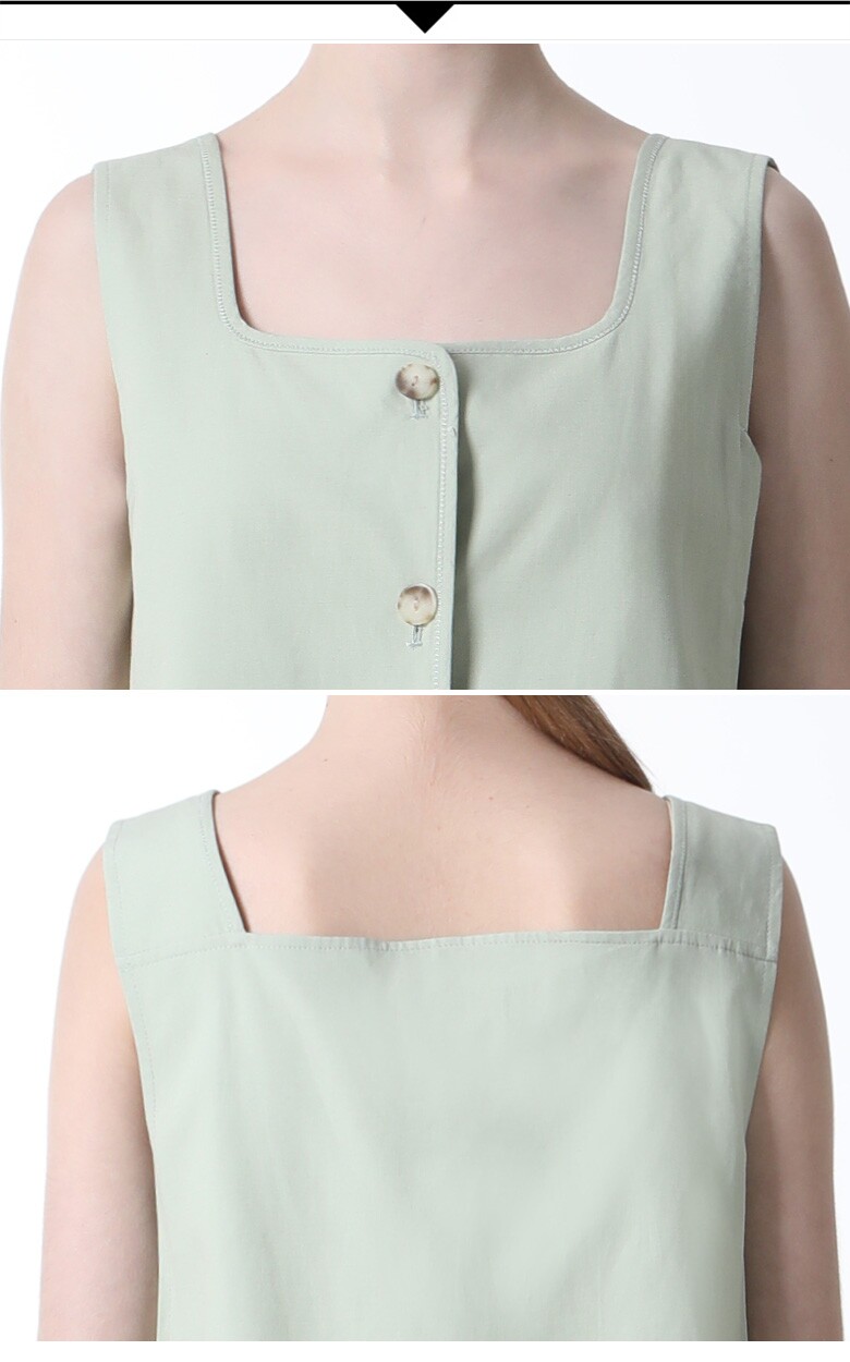 통기성이 우수한 린넨 블렌드 원단의 스퀘어넥 슬리브리스 블라우스입니다. 브랜드만의 고급원단으로 통기성이 우수하며 한여름까지 시원하게 착용가능한 제품입니다. 단독이나 이너로 활용하기 좋으며 다양한 하의와 매치가능한 활용만점 기본 아이템으로 적극 추천드립니다.
