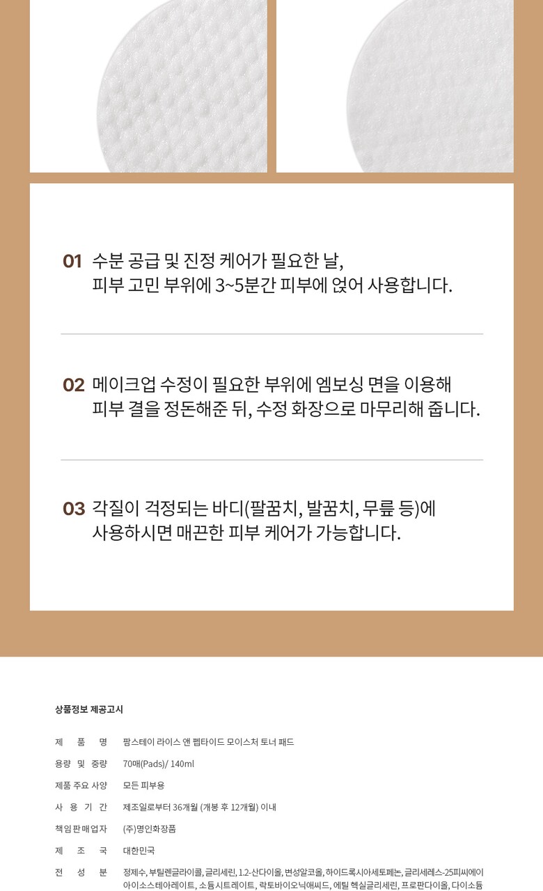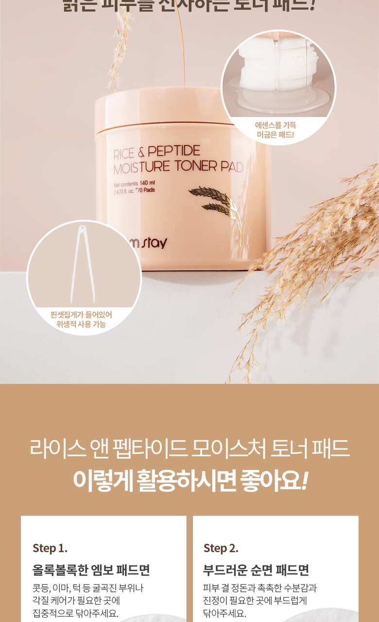 팜스테이 라이스 앤 펩타이드 모이스처 토너패드 70매