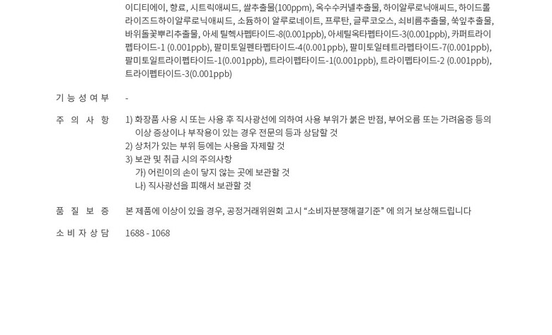 8. 기능성 화장품의 경우 화장품법에 따른 식품의약품안전청 심사 필 유무 | 상품상세참조 |