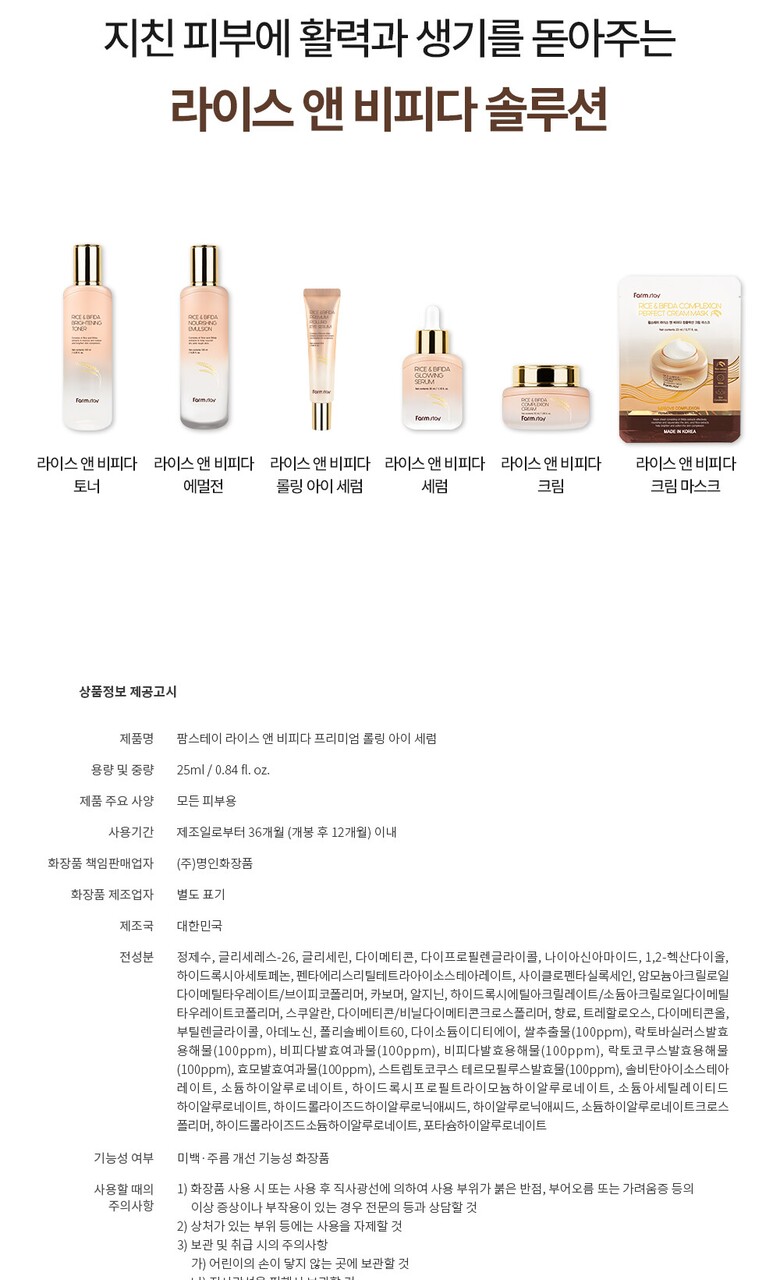 [1+1] 팜스테이 라이스 앤 비피다 프리미엄 롤링 아이 세럼 25ml