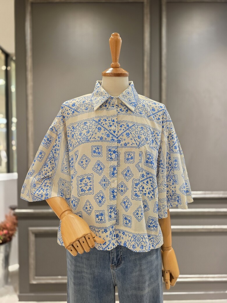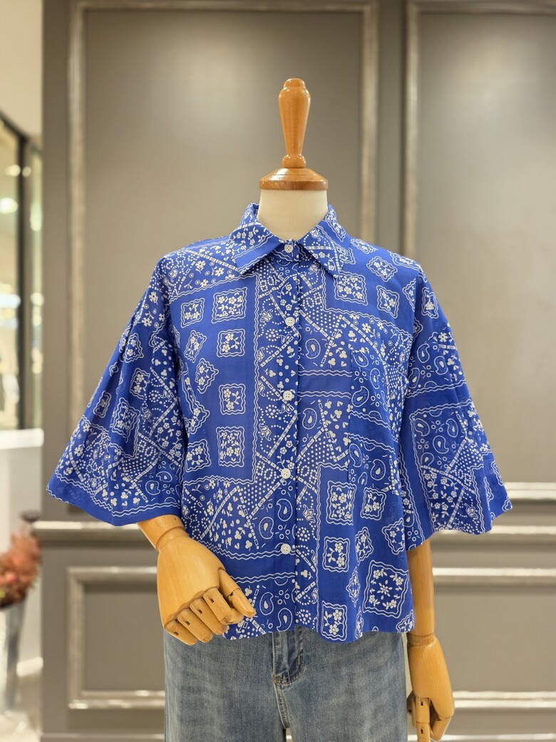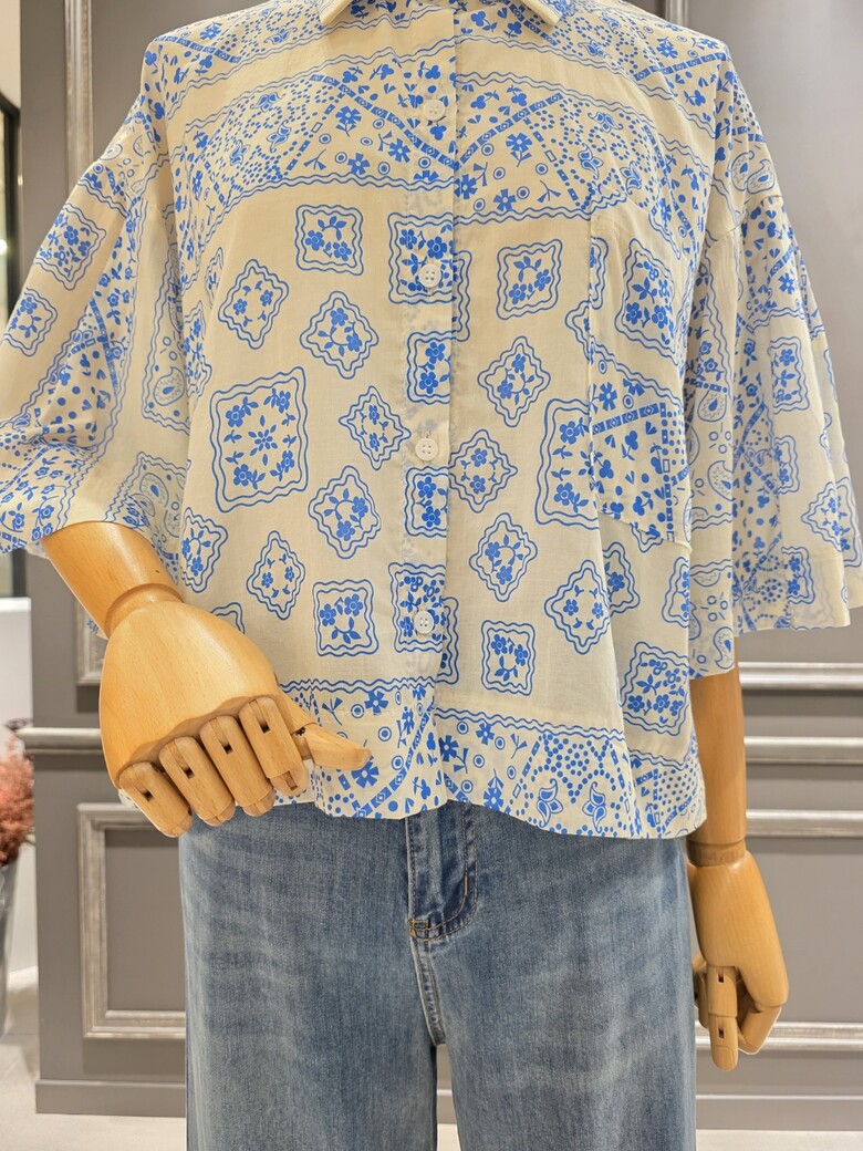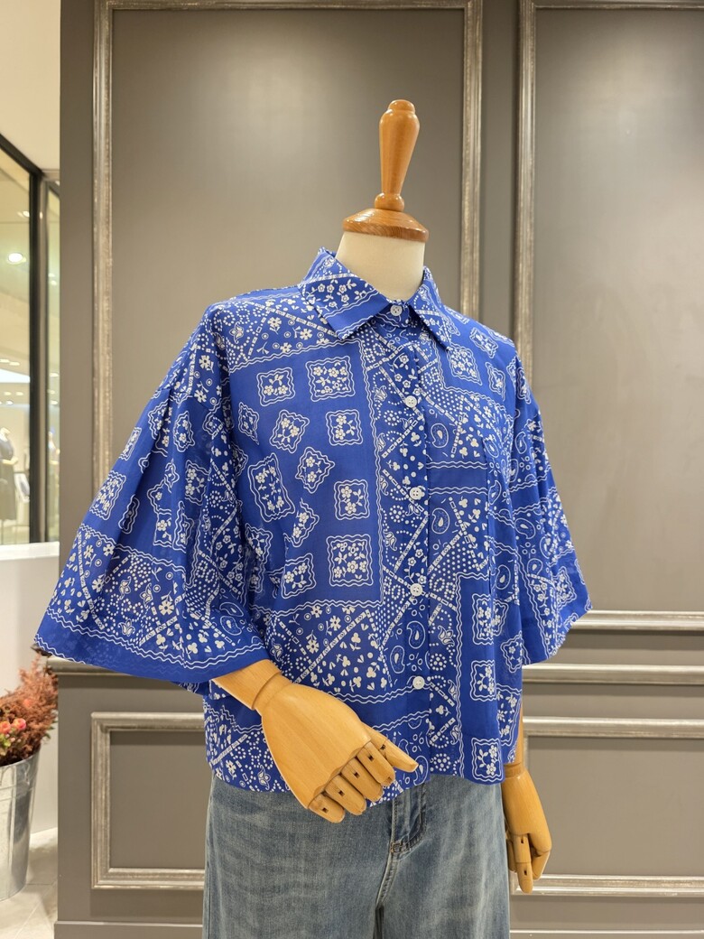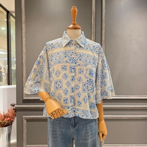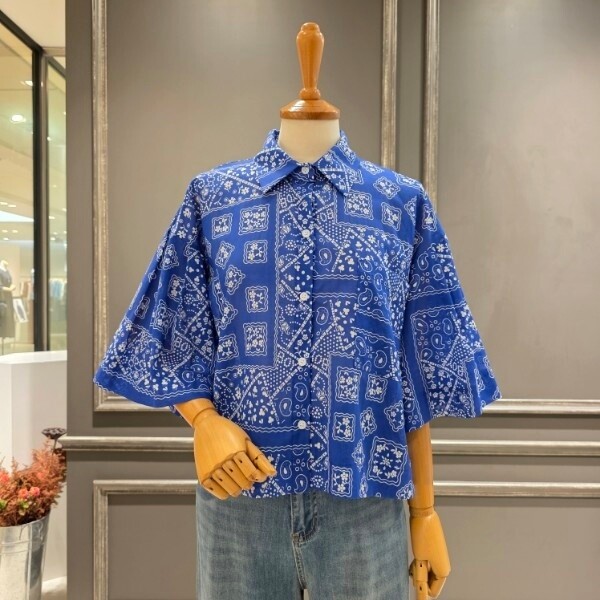 플라워 패턴의 면 블라우스입니다~ 와이드한 슬리브디자인으로 통통하신 분은 커버하시기 좋으며 숏한 기장감으로 캐주얼하게 연출하시기 좋아요?