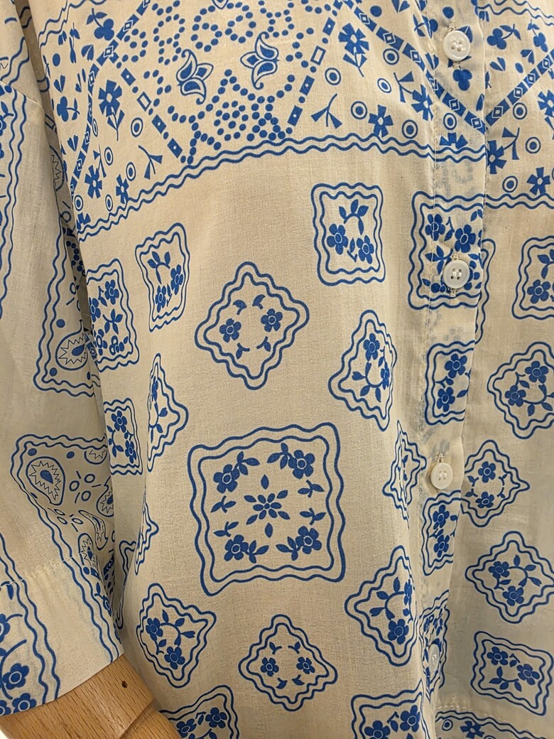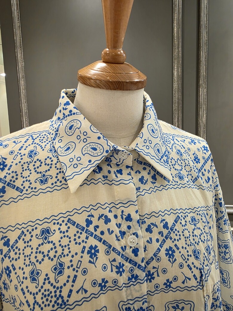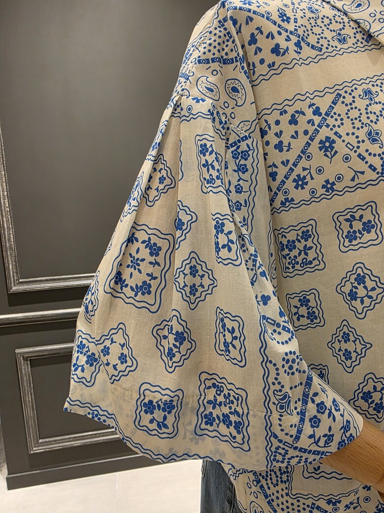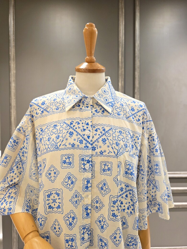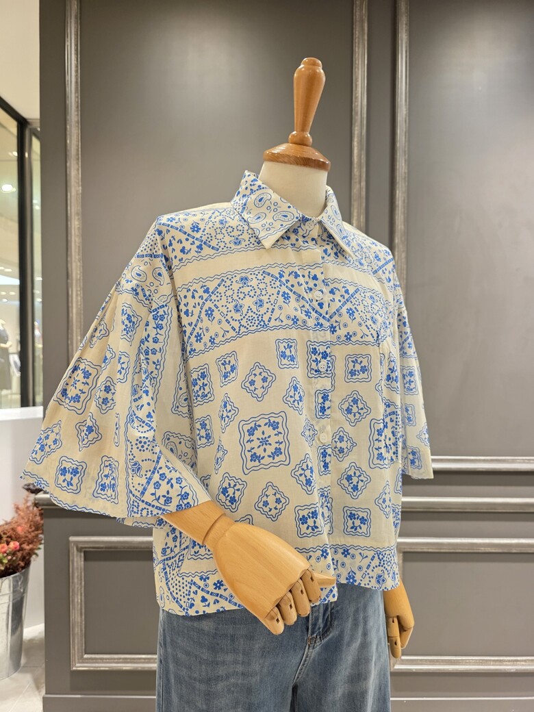 플라워 패턴의 면 블라우스입니다~ 와이드한 슬리브디자인으로 통통하신 분은 커버하시기 좋으며 숏한 기장감으로 캐주얼하게 연출하시기 좋아요?