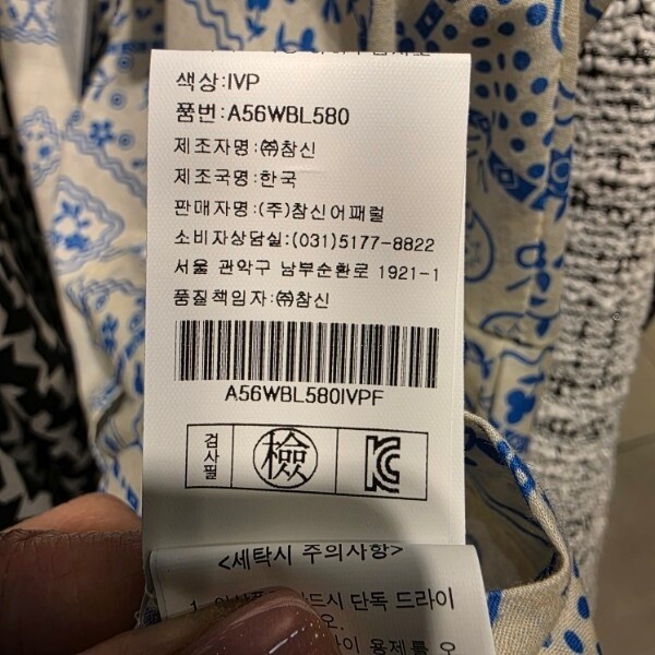 세탁방법 및 취급시 주의사항 : 드라이크리닝