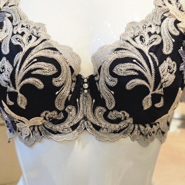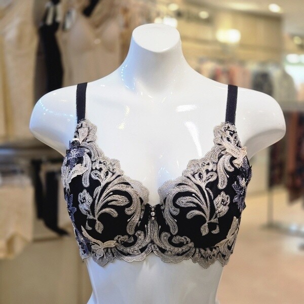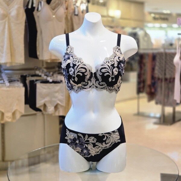 섬세한 자수레이스와 고급스런 모티브의 조화가 아름다운 브라팬티 세트로 4/5컵 높이에 넓은 날개로 큰컵까지 자연스럽게 보정되는 피팅감 좋은 브라와 뒷판 햄스타일 팬티의 세트 제품