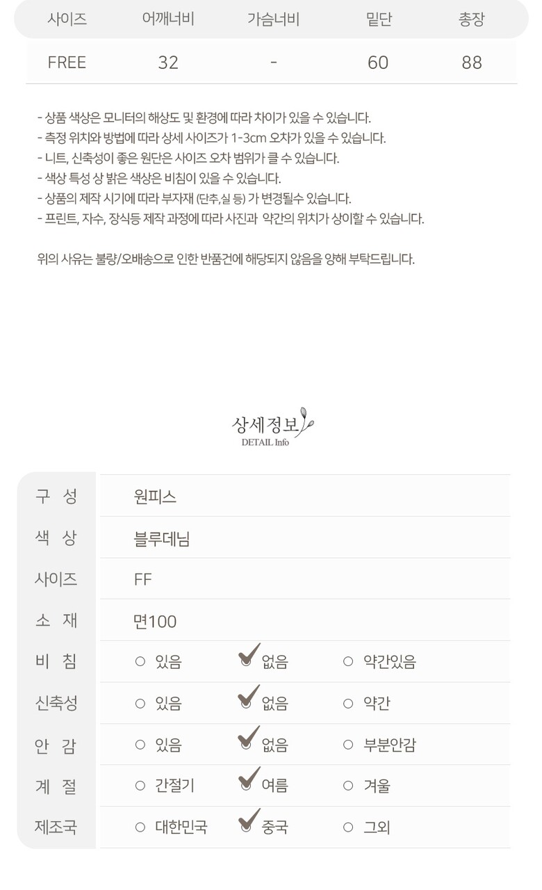 • 처음 배송된 상품상태와 다를 경우(세탁/착용 후 외출하신 경우) 반품이 불가합니다.