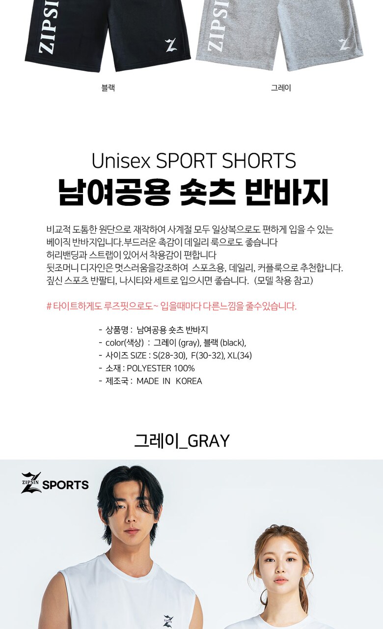 [짚신스포츠] 남여공용 반바지 국내제작