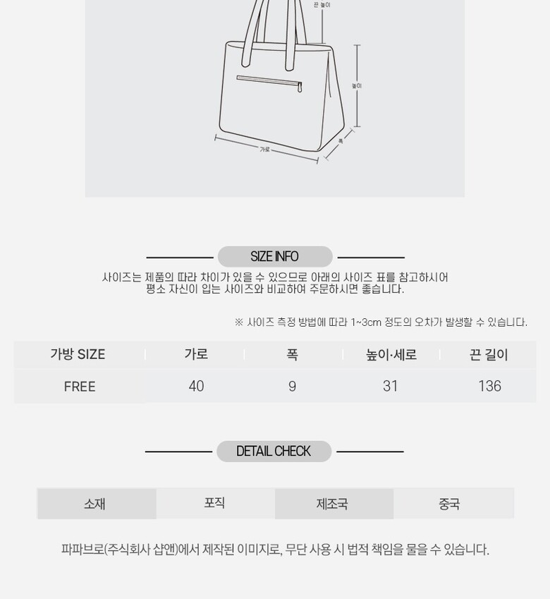 • 아울렛 상품의 특성 상 “택이 훼손”된 경우가 있으나 이는 불량이 아니며 무료 반품 대상 상품이 아닙니다.