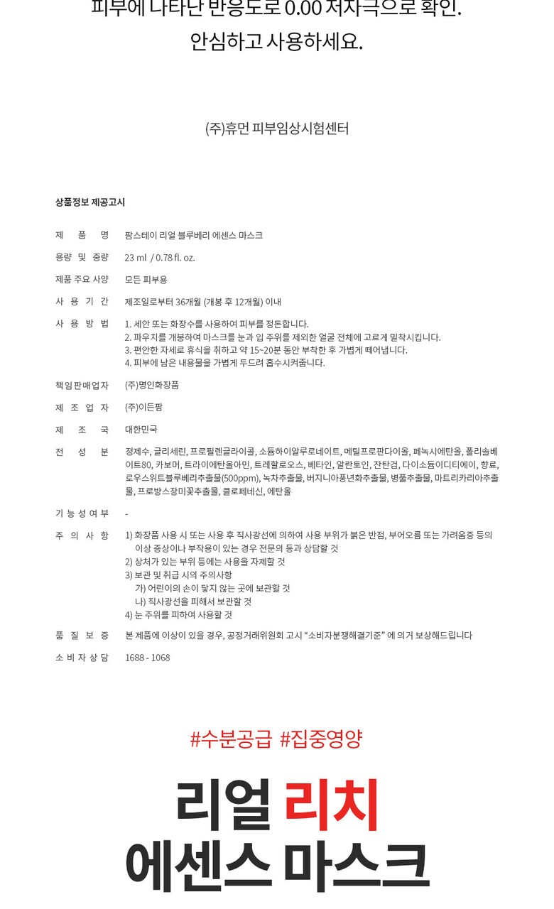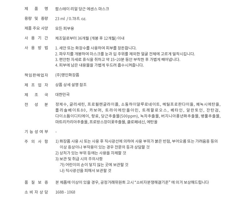 팜스테이 리얼 에센스 마스크 23ml 10매