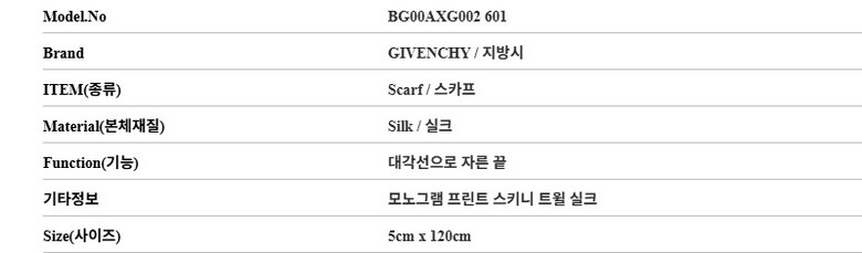 지방시 스카프 BG00AXG002 601 4G 모노그램 프린트 스키니 트윌 실크 여성스카프 당일발송