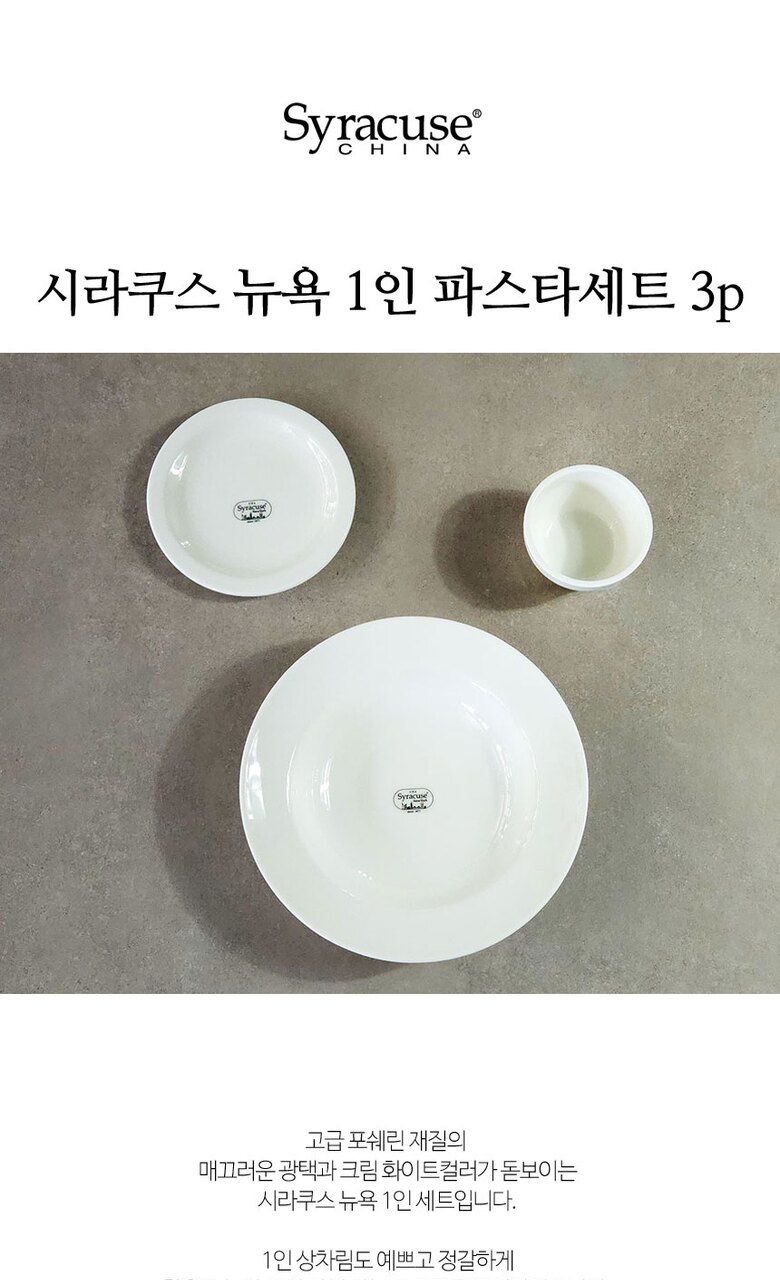 1. 품명 및 모델명 | 시라쿠스 뉴욕 화이트 1인 3p 파스타세트 |