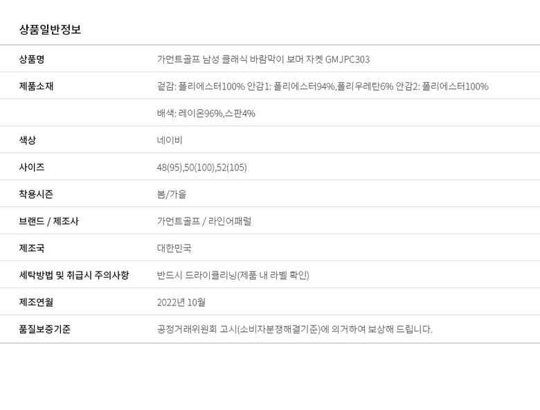 가먼트골프 남성 클래식 바람막이 보머 자켓 GMJPC303