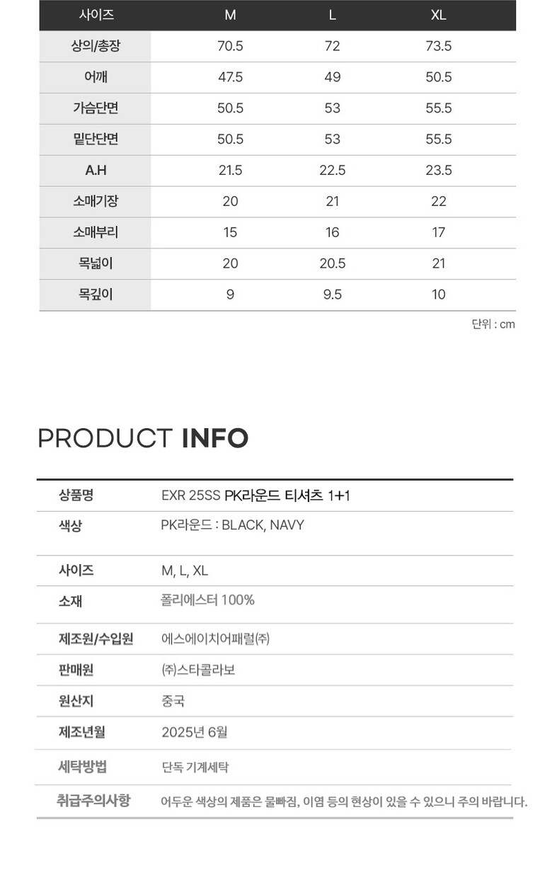 [EXR] 25SS 올라운드 남성 PK라운드 티셔츠 1+1 네이비+블랙