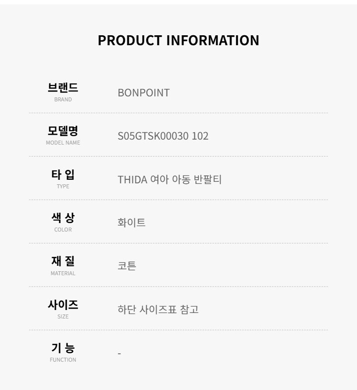 봉쁘앙 S05GTSK00030 102 THIDA 여아 아동 반팔티