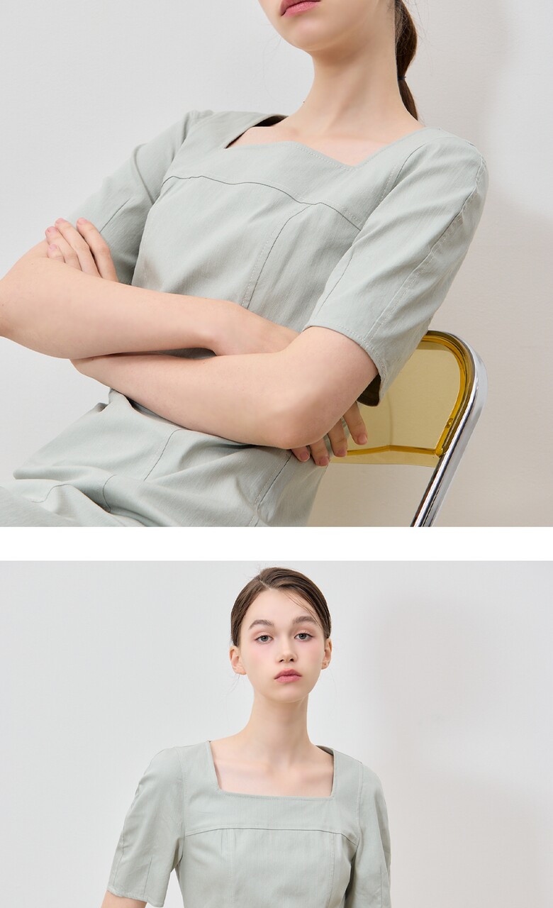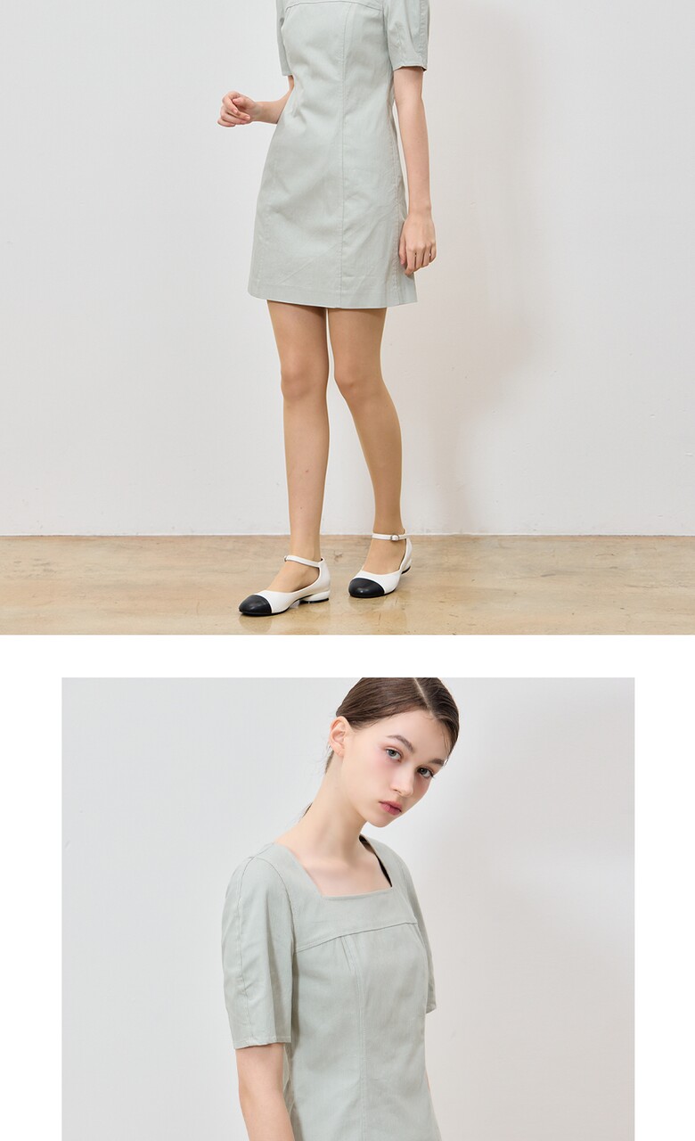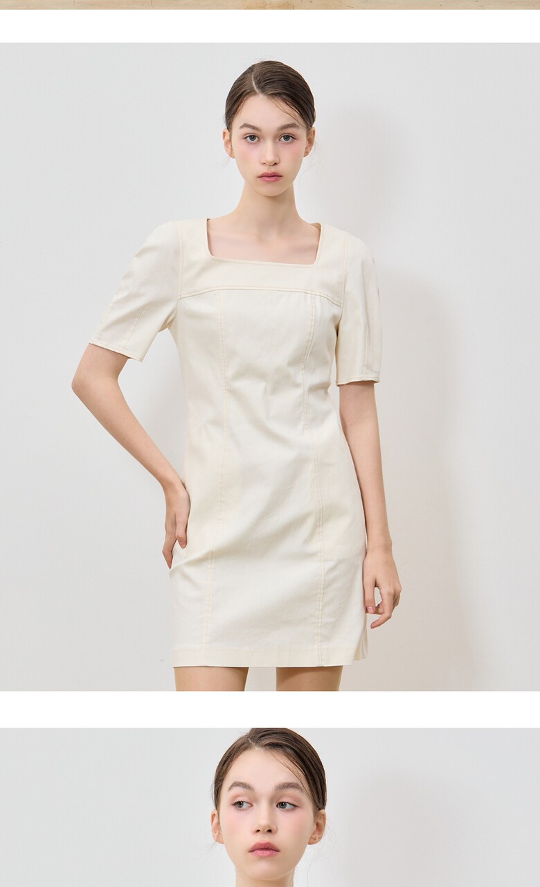 [리스트(LIST)] 경쾌한 코튼 스퀘어넥 반팔 원피스 (택가격: 298000원)
