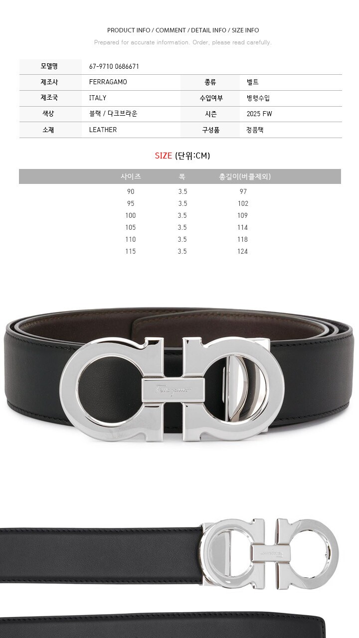 페라가모 25FW 더블 간치니 양면 벨트 블랙다크브라운 67-9710 0686671