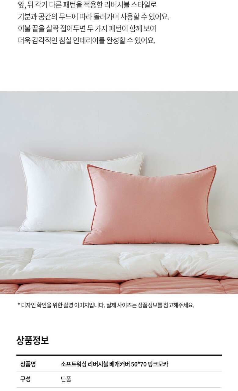 모던하우스 소프트워싱 리버시블 베개커버 50x70 핑크모카 CV0325157
