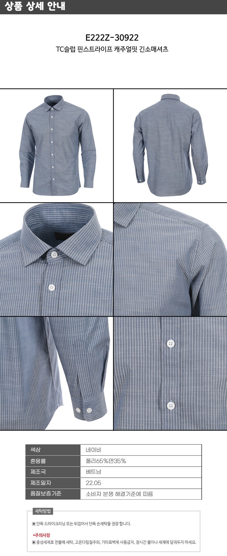 엘르 남성 TC슬럽 핀스트라이프 캐주얼핏 긴소매셔츠 30922