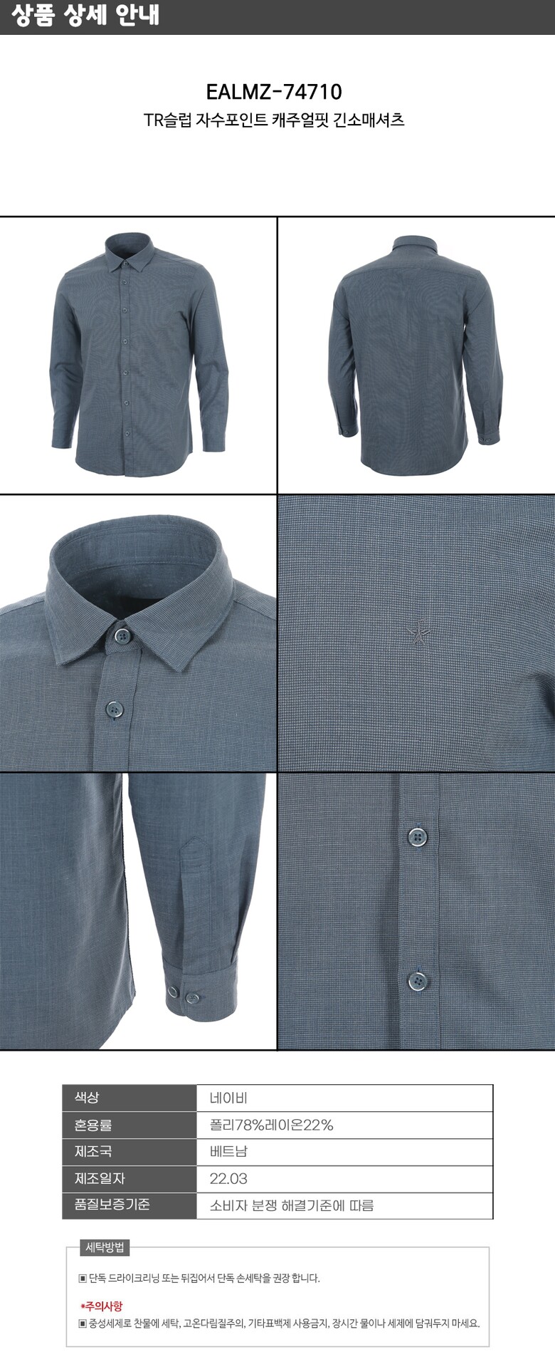 엘르 남성 TR슬럽 자수포인트 캐주얼핏 긴소매셔츠 74710
