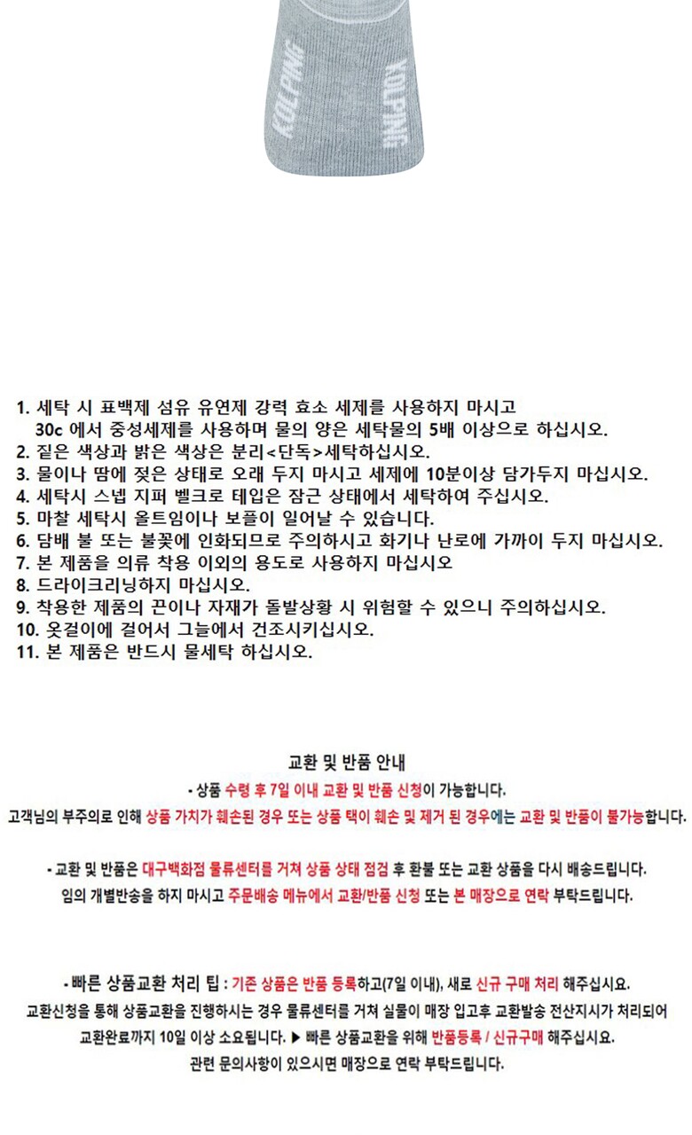 | 6. 취급시 주의사항 | 단독세탁,세탁기 및 표백성세제 사용금지 |