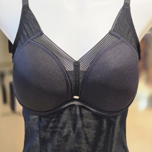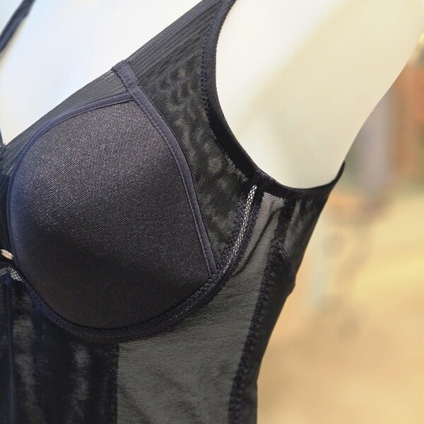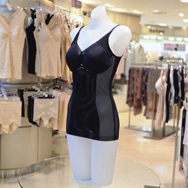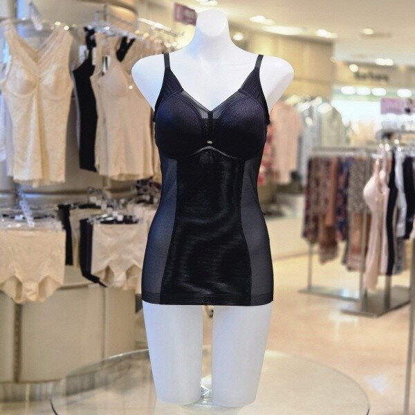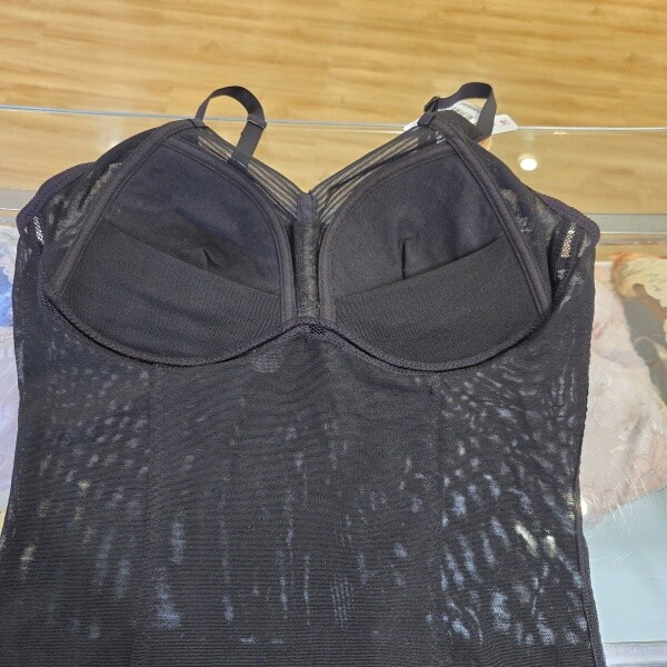 하이 컴포트 노와이어 몰드 쉐이퍼로 심플한 디자인에 쾌적하고 편안한 착용감을 주며 세탁후에도 컵의 형태 변형이 적고 앞판 중심과 허리라인에만 살짝 긴장감을 준 제품 컵사이즈 없이 밑가슴둘레 사이즈만 적용