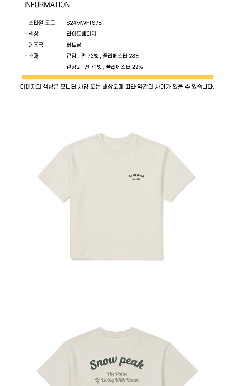 #S24MWFTS78 #고프고어 #오버핏 #반팔 #기본티 #캠핑룩 #캠핑 #트레킹 #스노우피크어패럴 #스노우피크 #SnowPeak