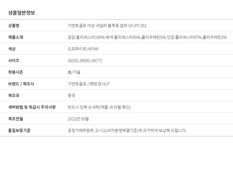 가먼트골프 여성 세일러 블루종 점퍼 GFJPC352