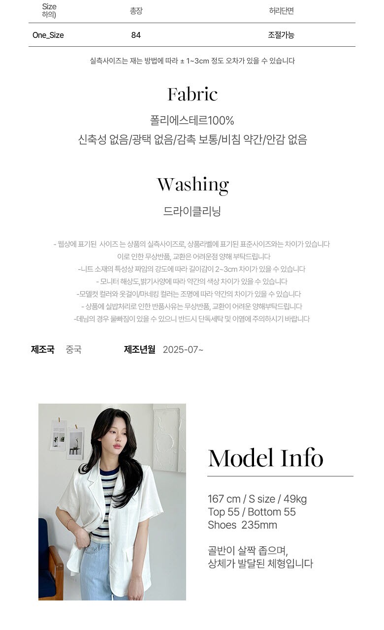 • 처음 배송된 상품상태와 다를 경우(세탁/착용 후 외출하신 경우) 반품이 불가합니다.