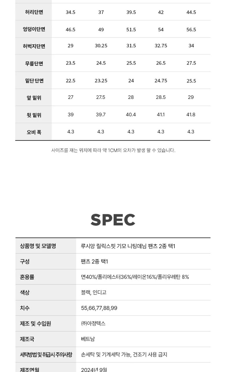 1. 제품 소재 (섬유의 조성 또는 혼용률을 백분율로 표시, 기능성인 경우 성적서 또는 허가서) 상세페이지 참조