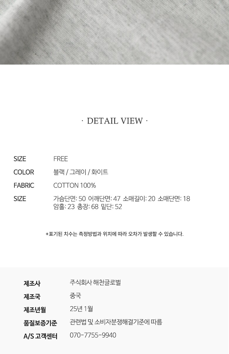 1. 제품 소재 (섬유의 조성 또는 혼용률을 백분율로 표시, 기능성인 경우 성적서 또는 허가서) | 상품 상세페이지 참조 |