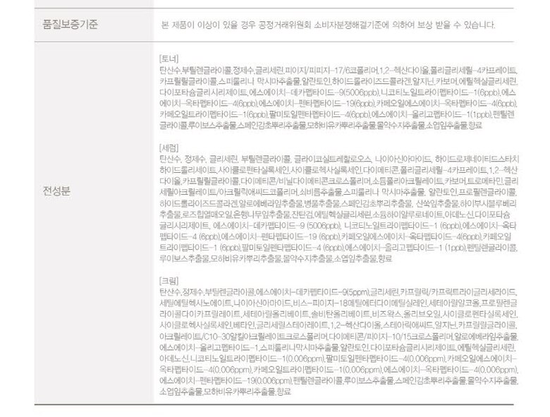 8. 기능성 화장품의 경우 화장품법에 따른 식품의약품안전청 심사 필 유무 상세페이지 참조