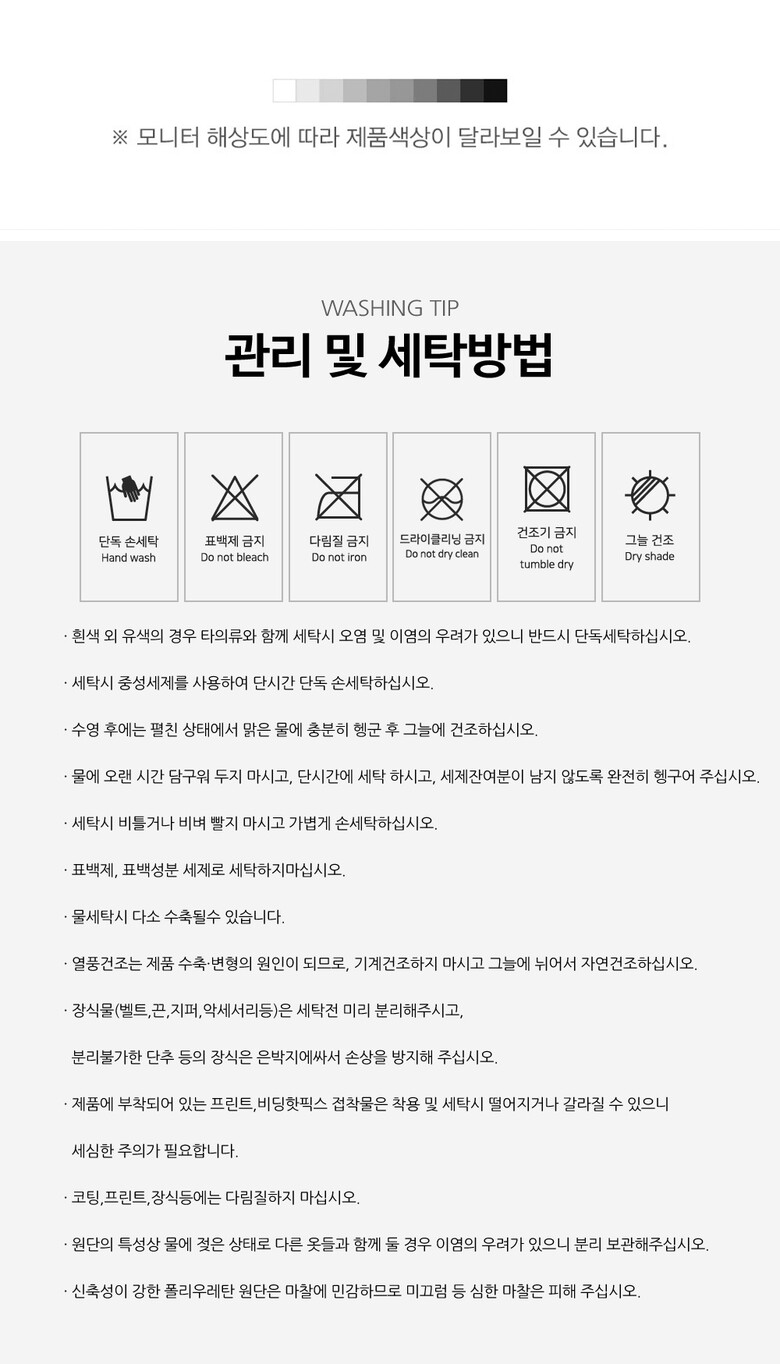 6. 세탁방법 및 취급시 주의사항 상세페이지 참조