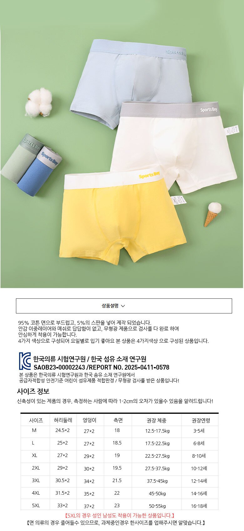스포츠 보이 주니어 사각드로즈 4종세트(3세-18세)