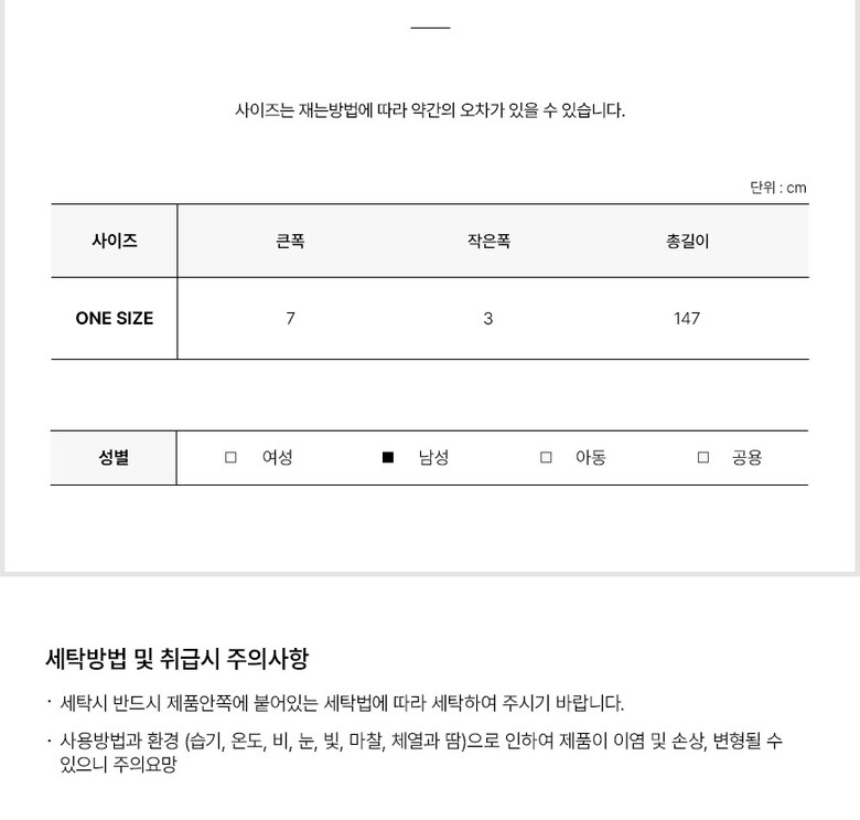 3. 치수 큰폭 7cm X 작은폭 3cm X 총길이 147cm