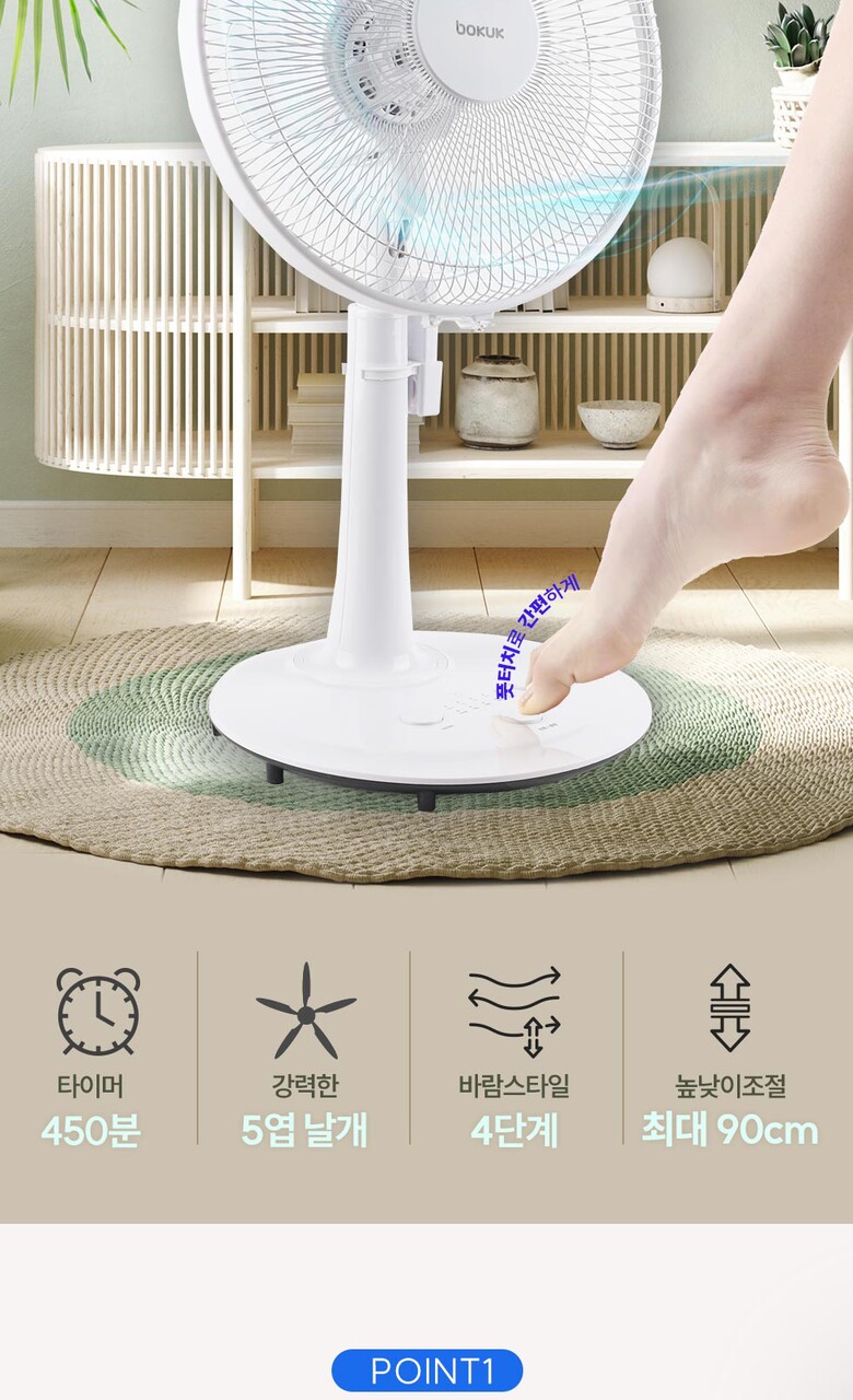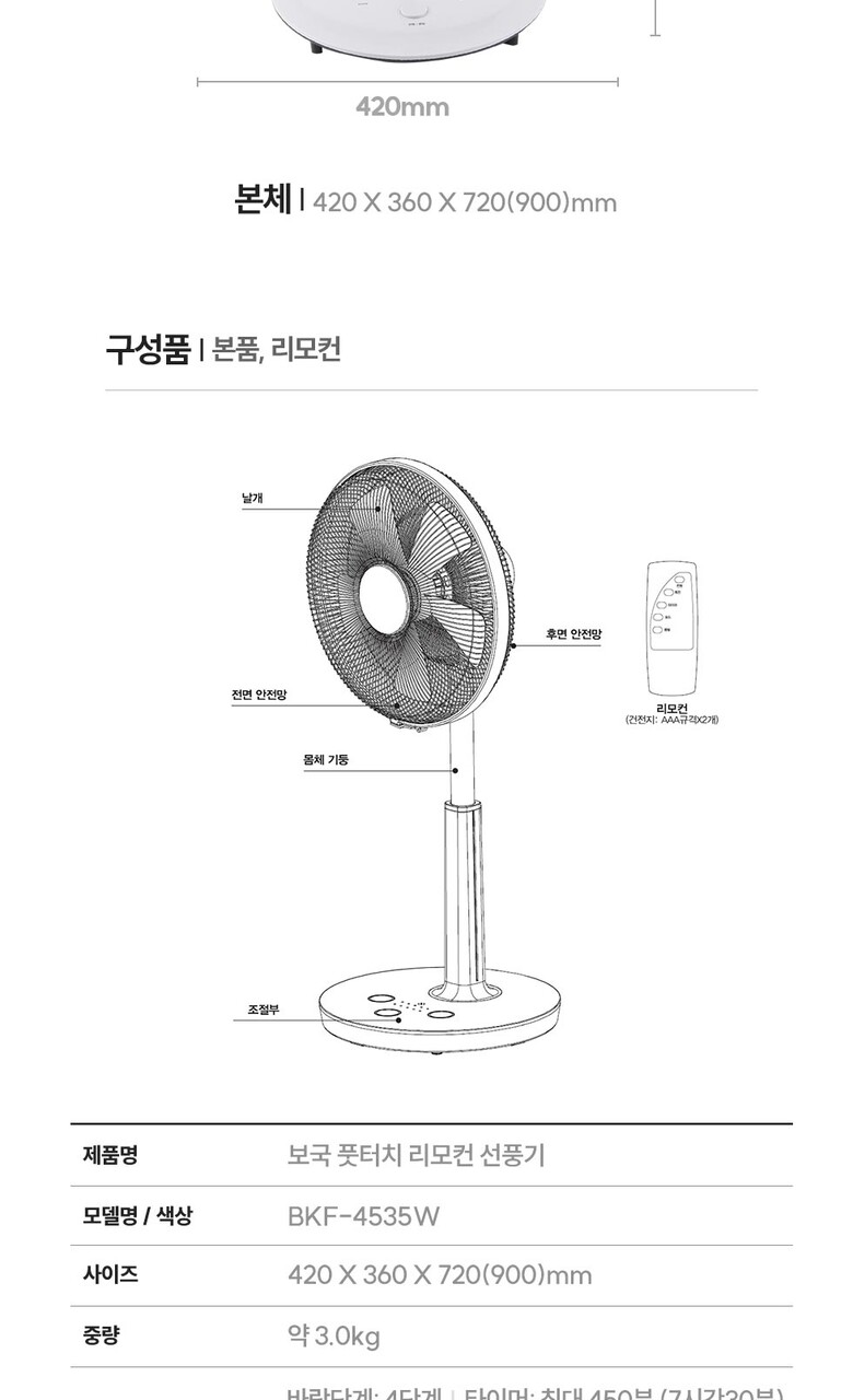 보국전자 풋터치 리모컨식 선풍기 BKF-4535W