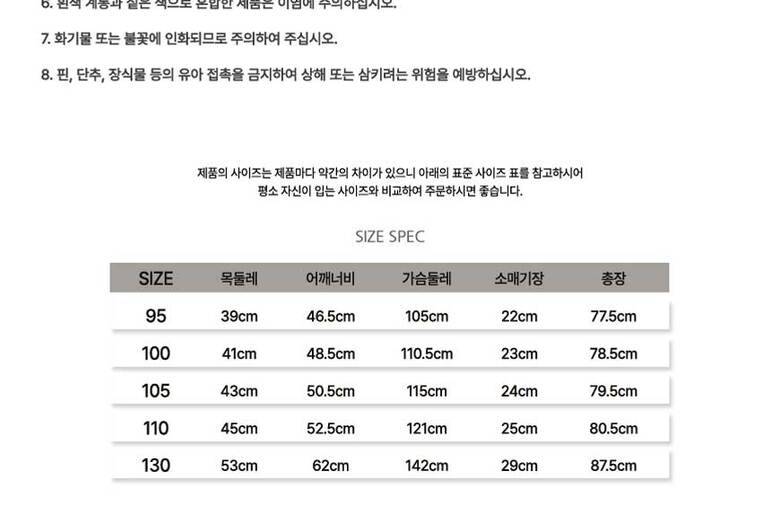 6. 세탁방법 및 취급시 주의사항 | 상세페이지 참조 |