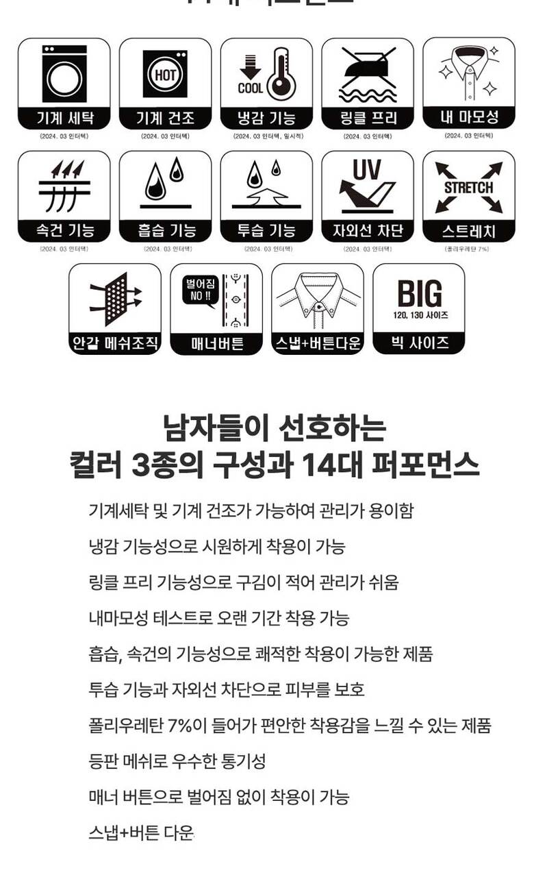 [니콜생지르] 냉감 등판 메쉬원단 통기성 반팔 셔츠 3종 택 1