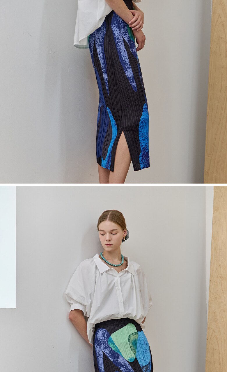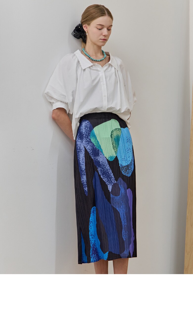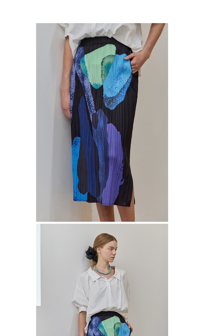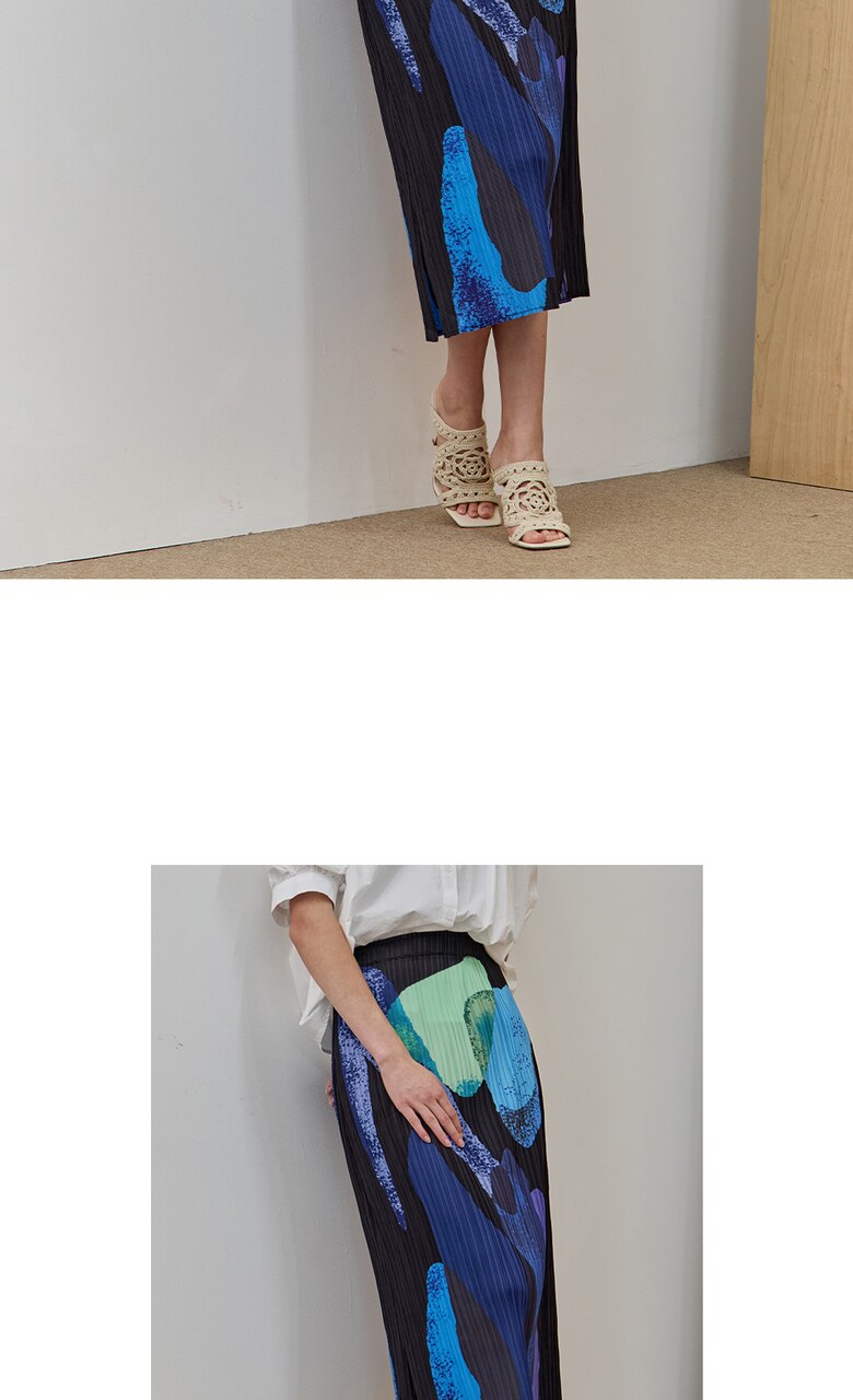 플루이드 아트 패턴 밴딩 플리츠 롱 스커트