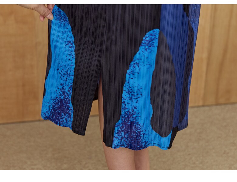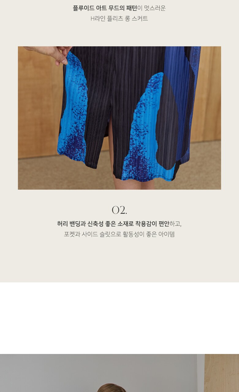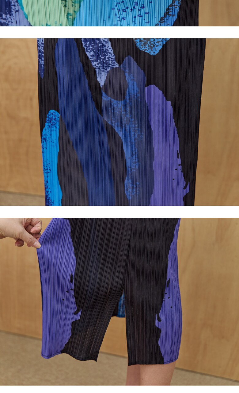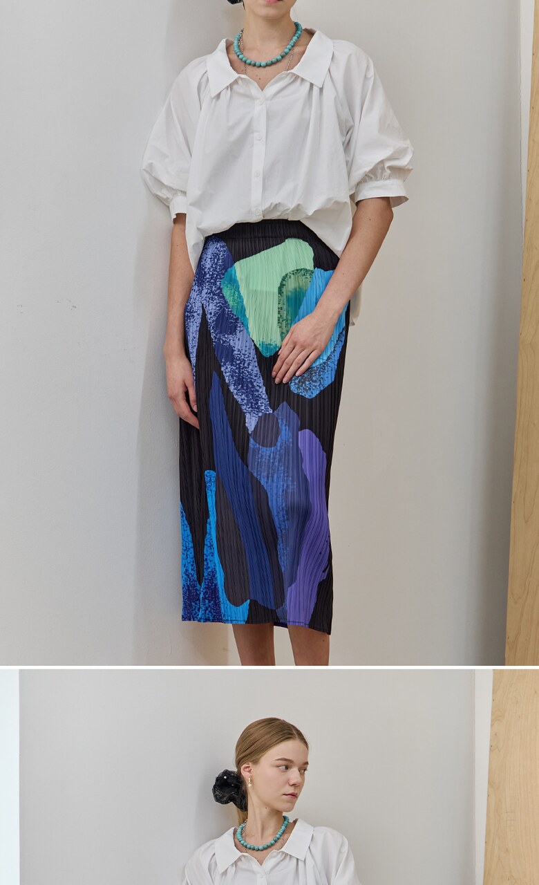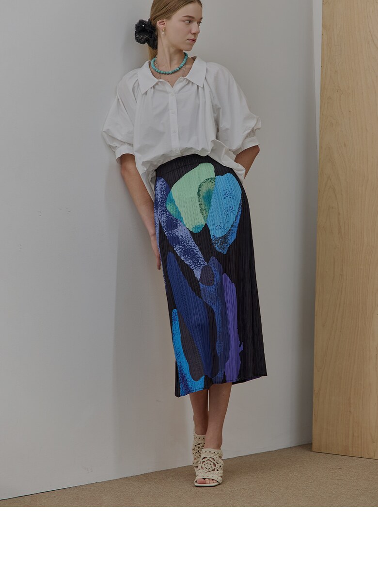 플루이드 아트 패턴 밴딩 플리츠 롱 스커트